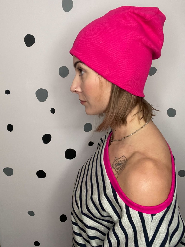 Czapka damska smerfetka w kolorze magenta to idealny wybór na jesień, wiosnę i cieplejsze dni zimy. Uszyta z elastycznej, prążkowanej dzianiny, świetnie dopasowuje się do kształtu głowy, nie uciska i zapewnia wygodę w każdej sytuacji. Dzięki dwuwarstwowej konstrukcji czapka chroni przed chłodem, a jednocześnie pozostaje lekka i przewiewna.