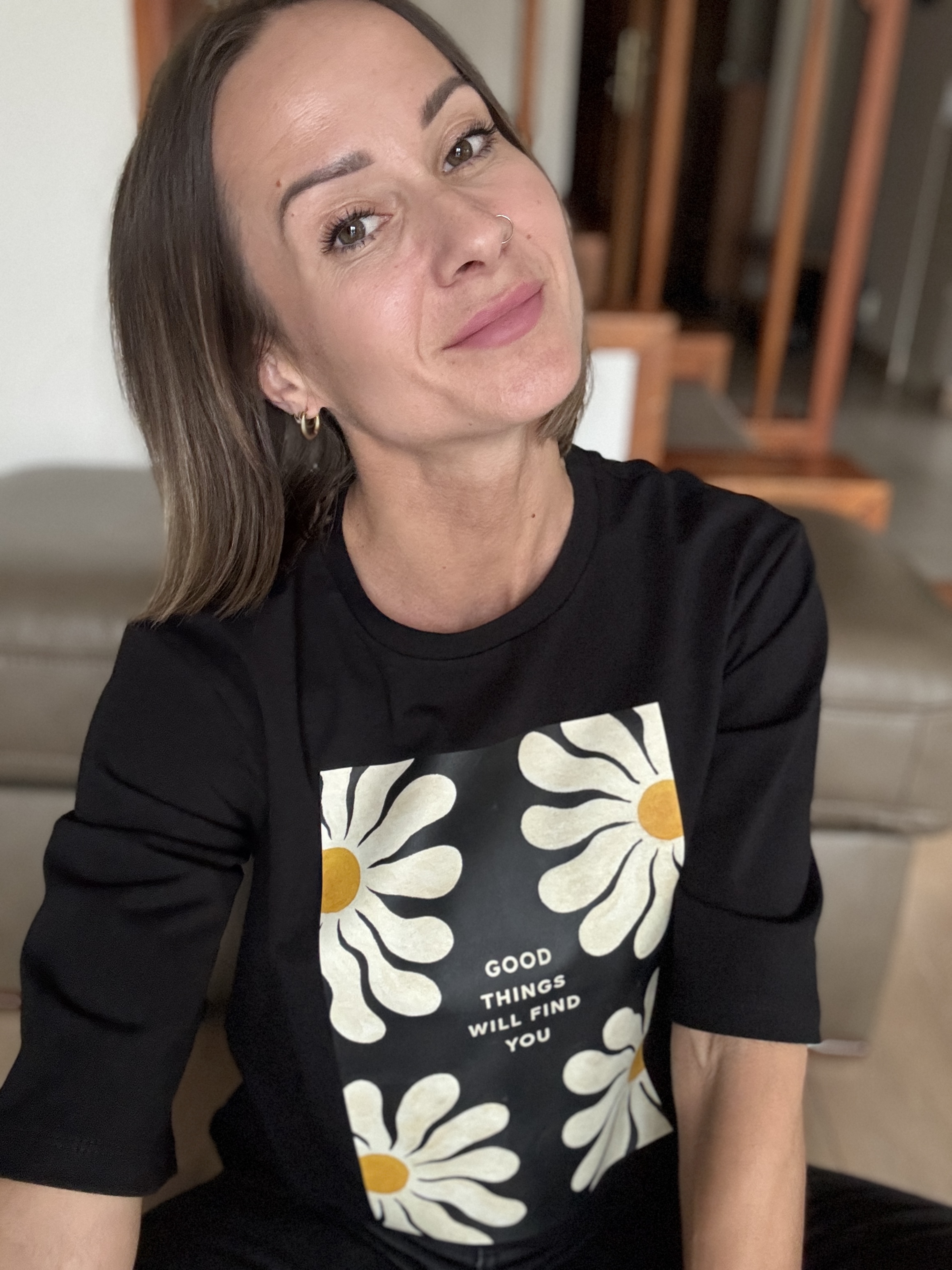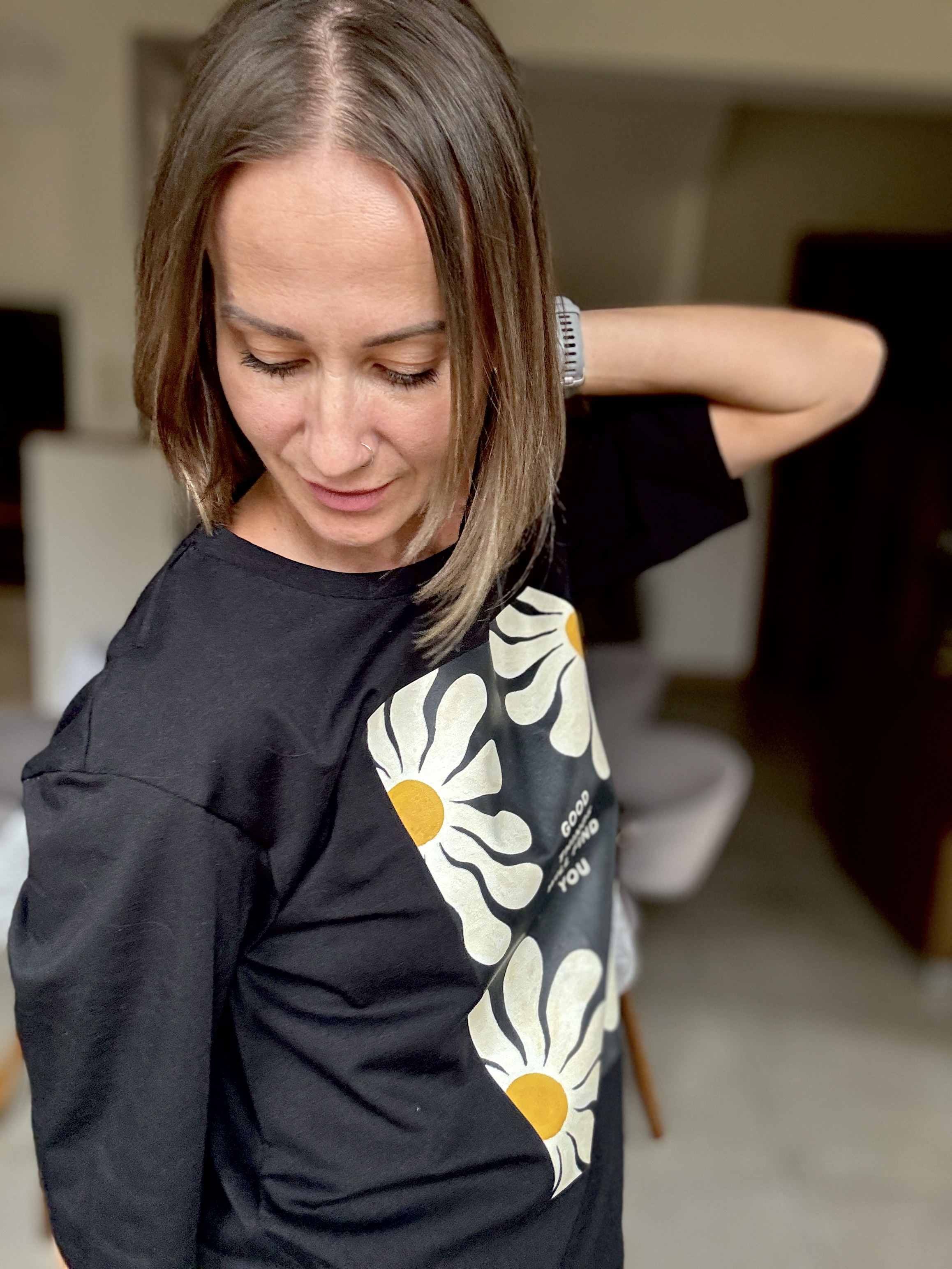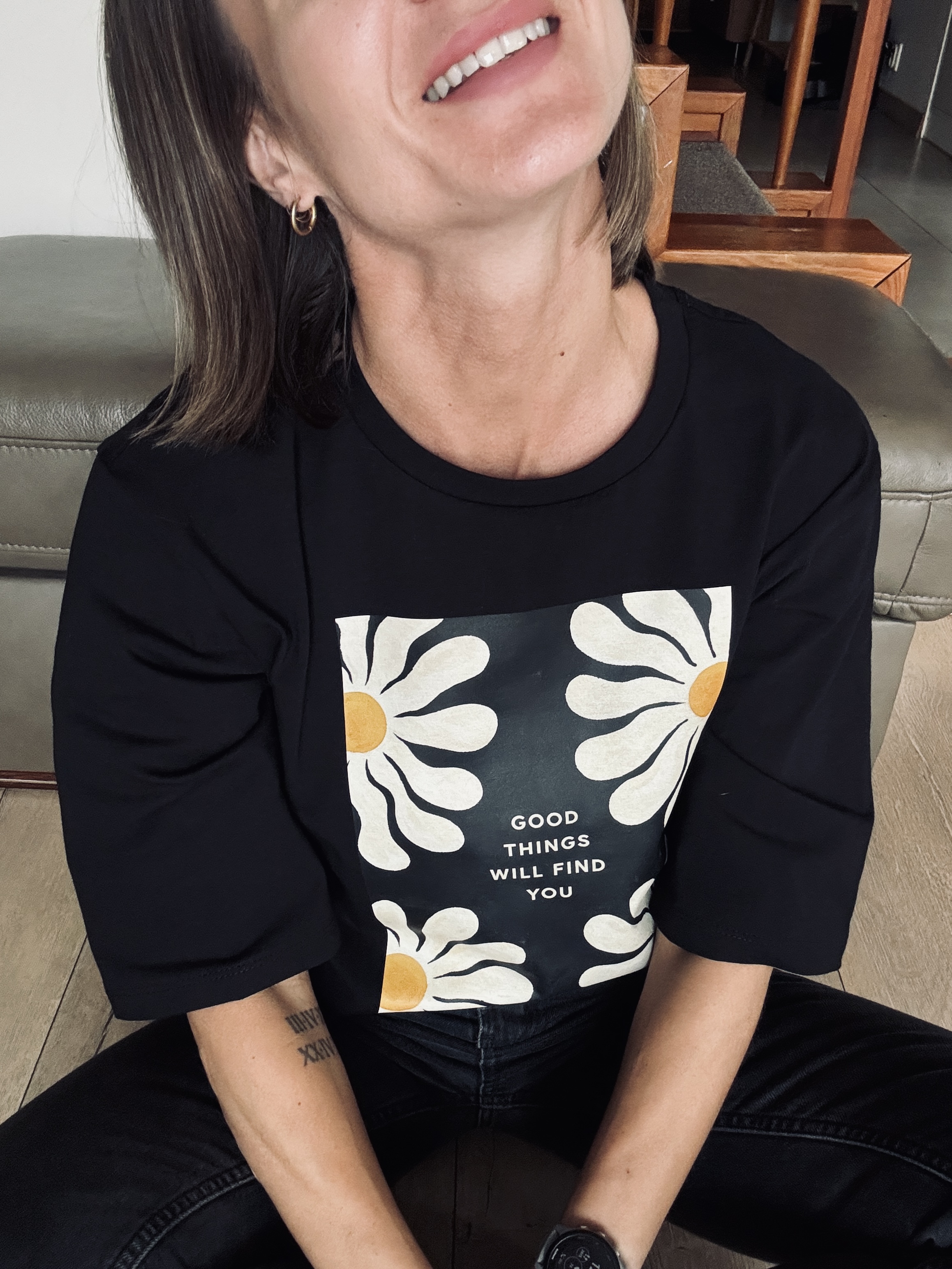 Czarna koszulka damska comfy stokrotki GOOD THINGS