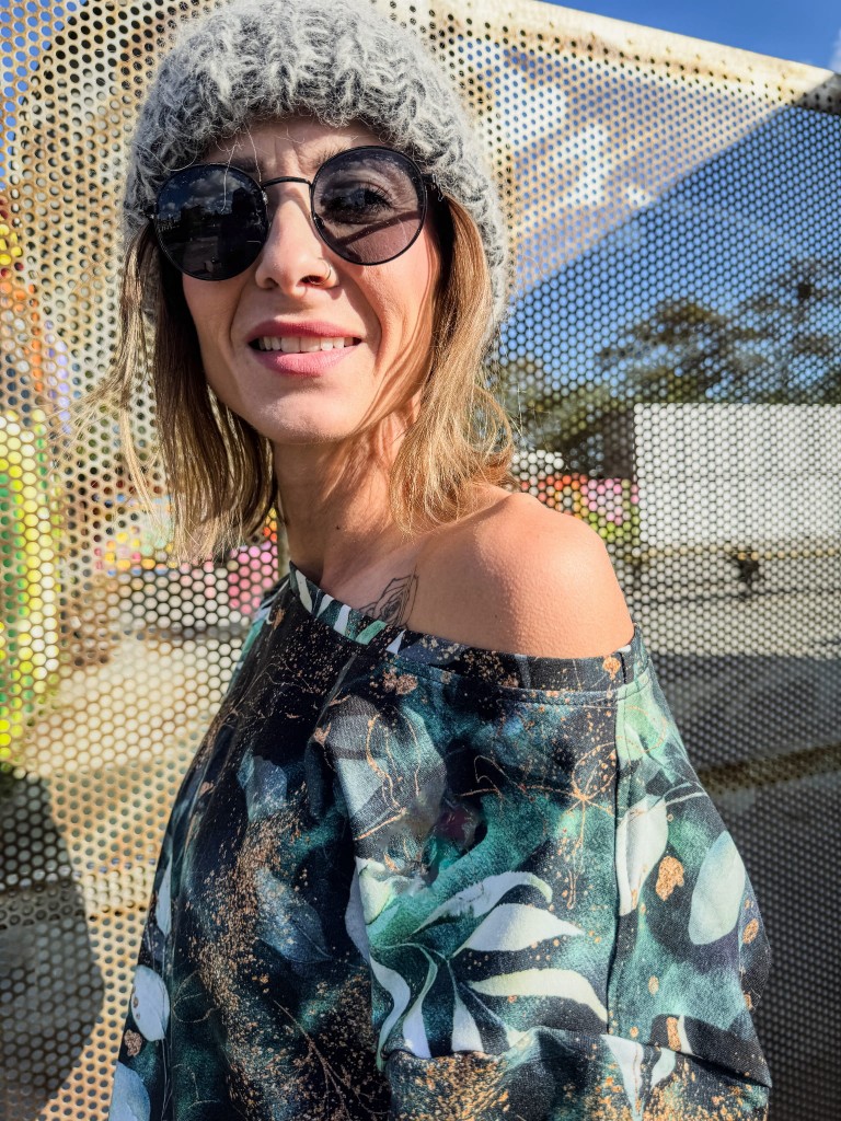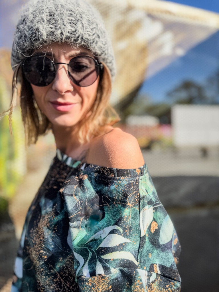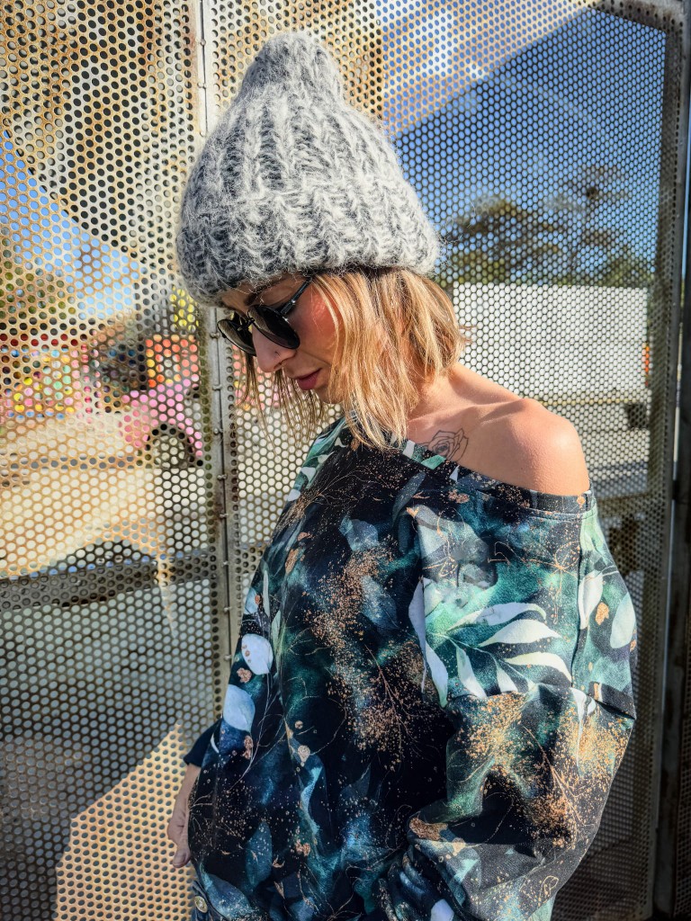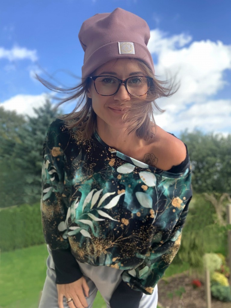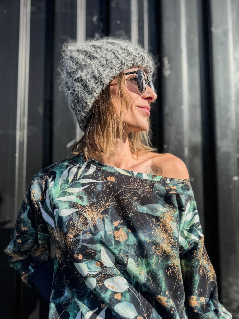 Uszyta z miękkiej dzianiny bawełnianej z elastanem, jest przyjemna dla skóry i świetnie układa się na sylwetce. Krój oversize z pogłębionym dekoltem pozwala nosić ją na jedno ramię – tak, by podkreślić kobiecą linię i dodać stylizacji subtelnej zmysłowości.
