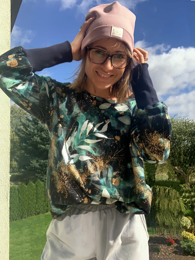Bluza Gwiezdny Pył to opowieść o nocy, która nigdy się nie kończy. Granatowy odcień jak bezkresne niebo, a subtelne, złoto–białe refleksy przypominają rozsypane gwiazdy. To ubranie stworzone dla kobiet, które kochają tajemnicę, światło i spokój ukryty w ciemności.