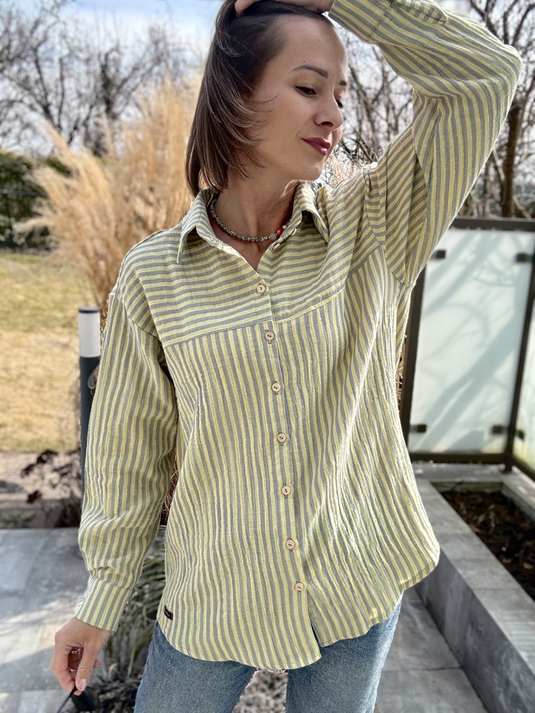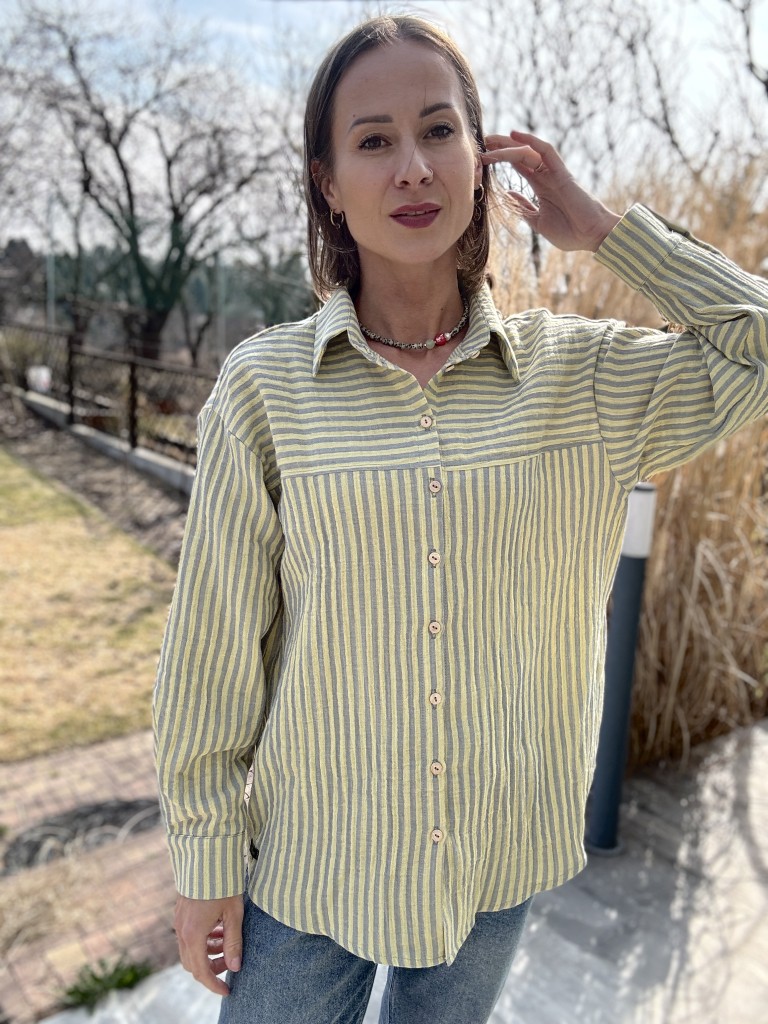 Damska koszula muślinowa paski lemon LIMITED