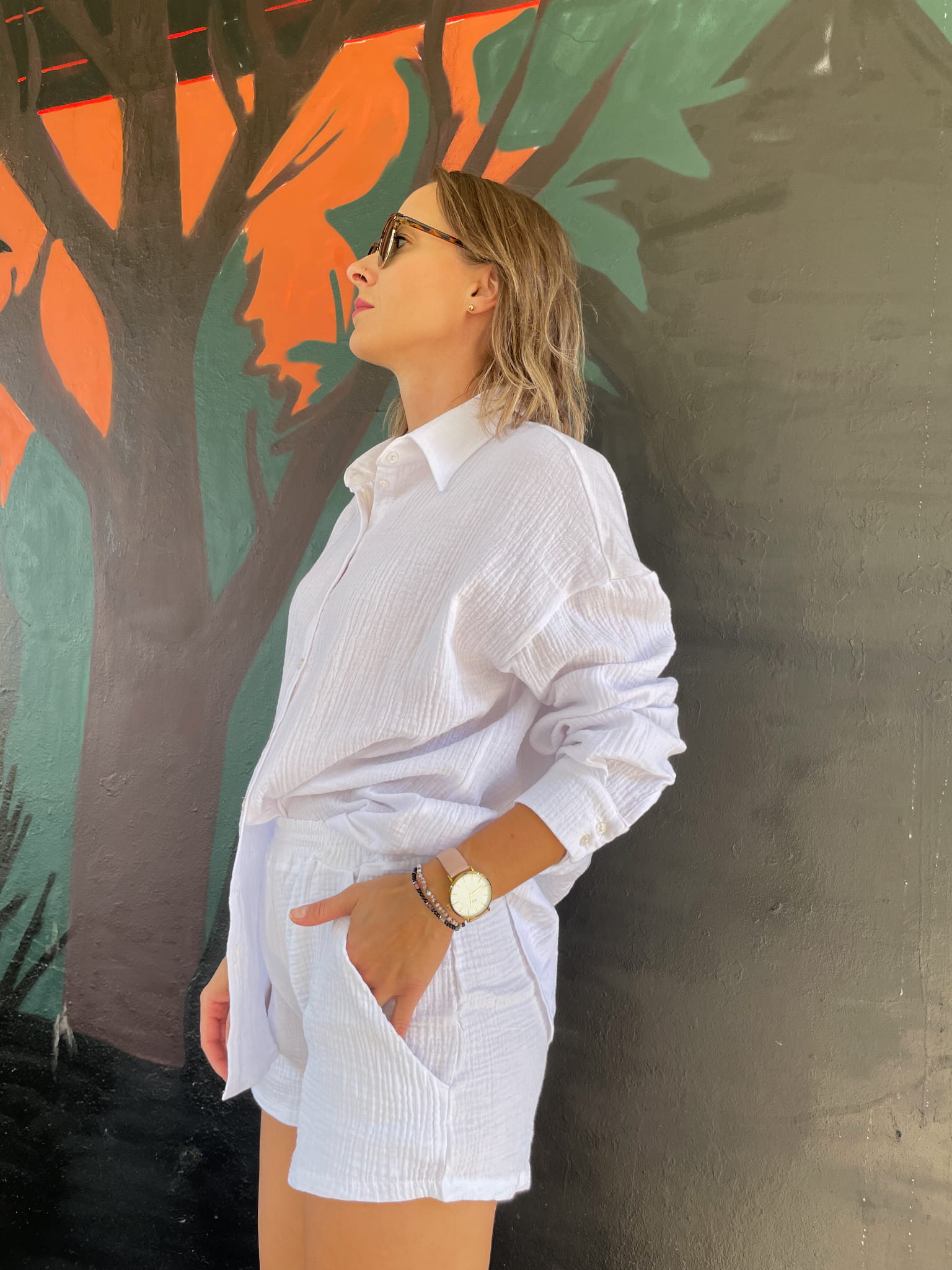 Miękka jak poranny wiatr. Lekka jak cisza. Koszula muślinowa o kroju oversize to esencja kobiecej swobody – ubranie, które żyje razem z Tobą, dopasowuje się do ruchów, oddycha i wygląda po prostu pięknie.