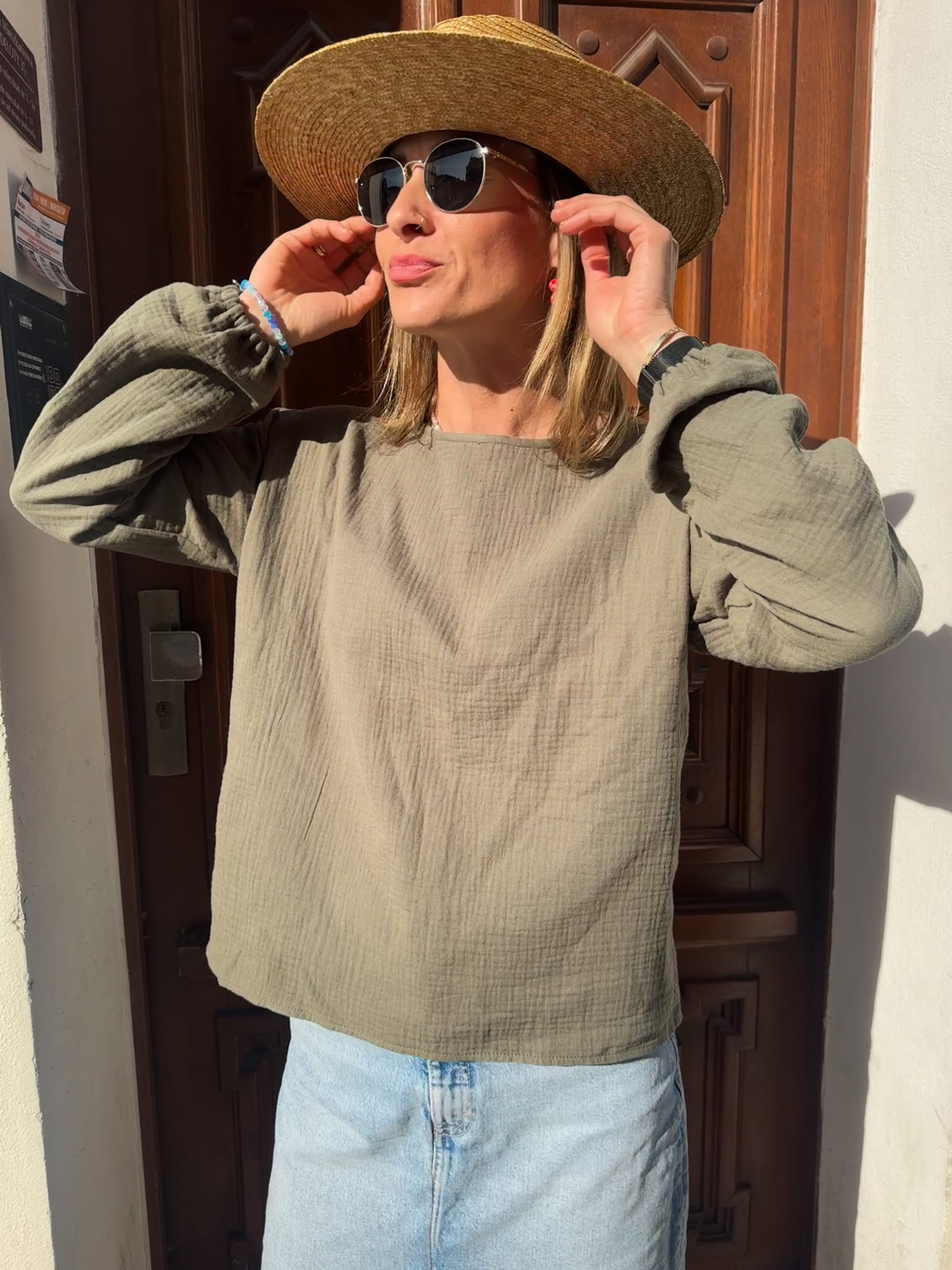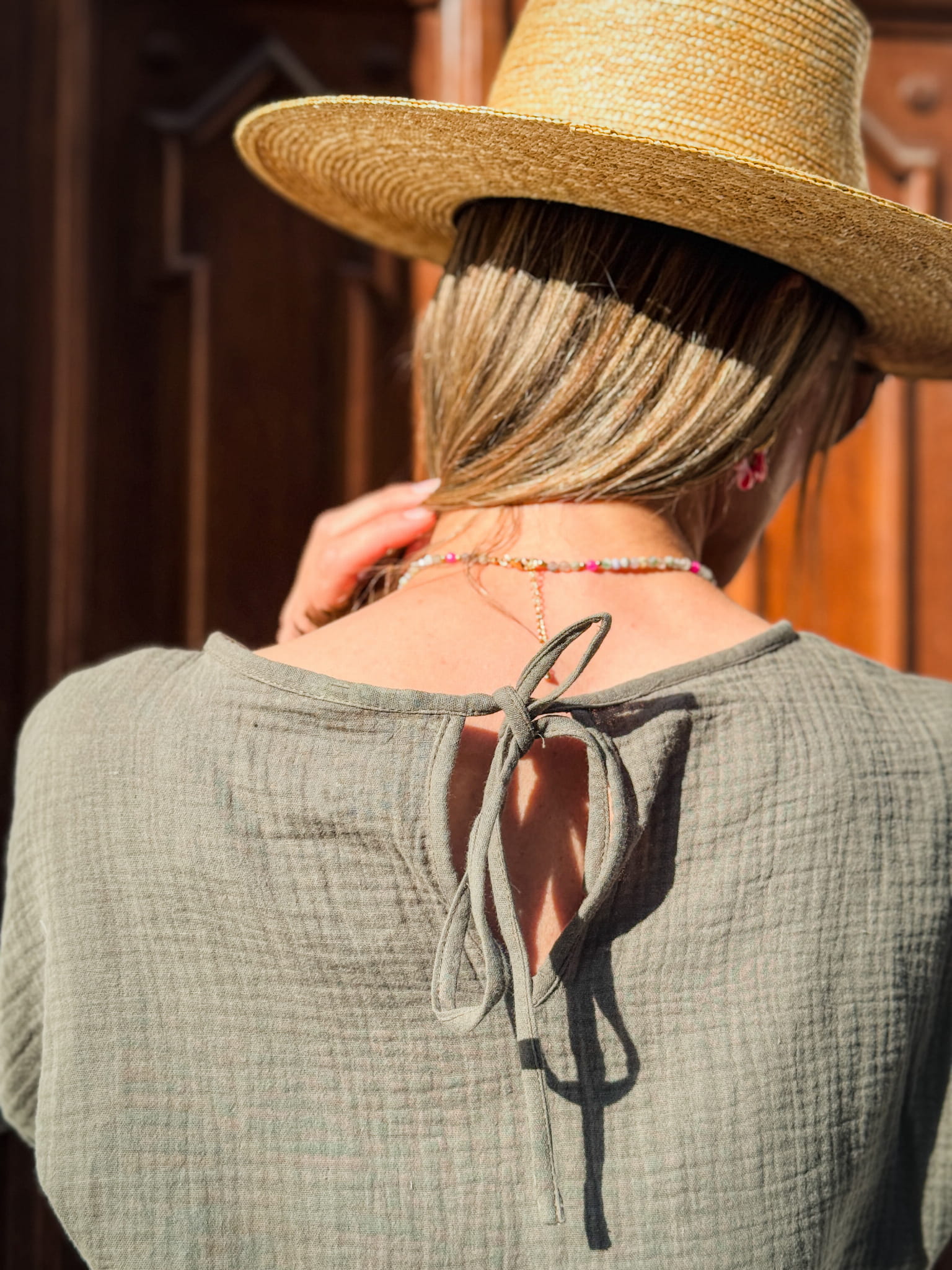 Muślinowa koszula wiązana KHAKI