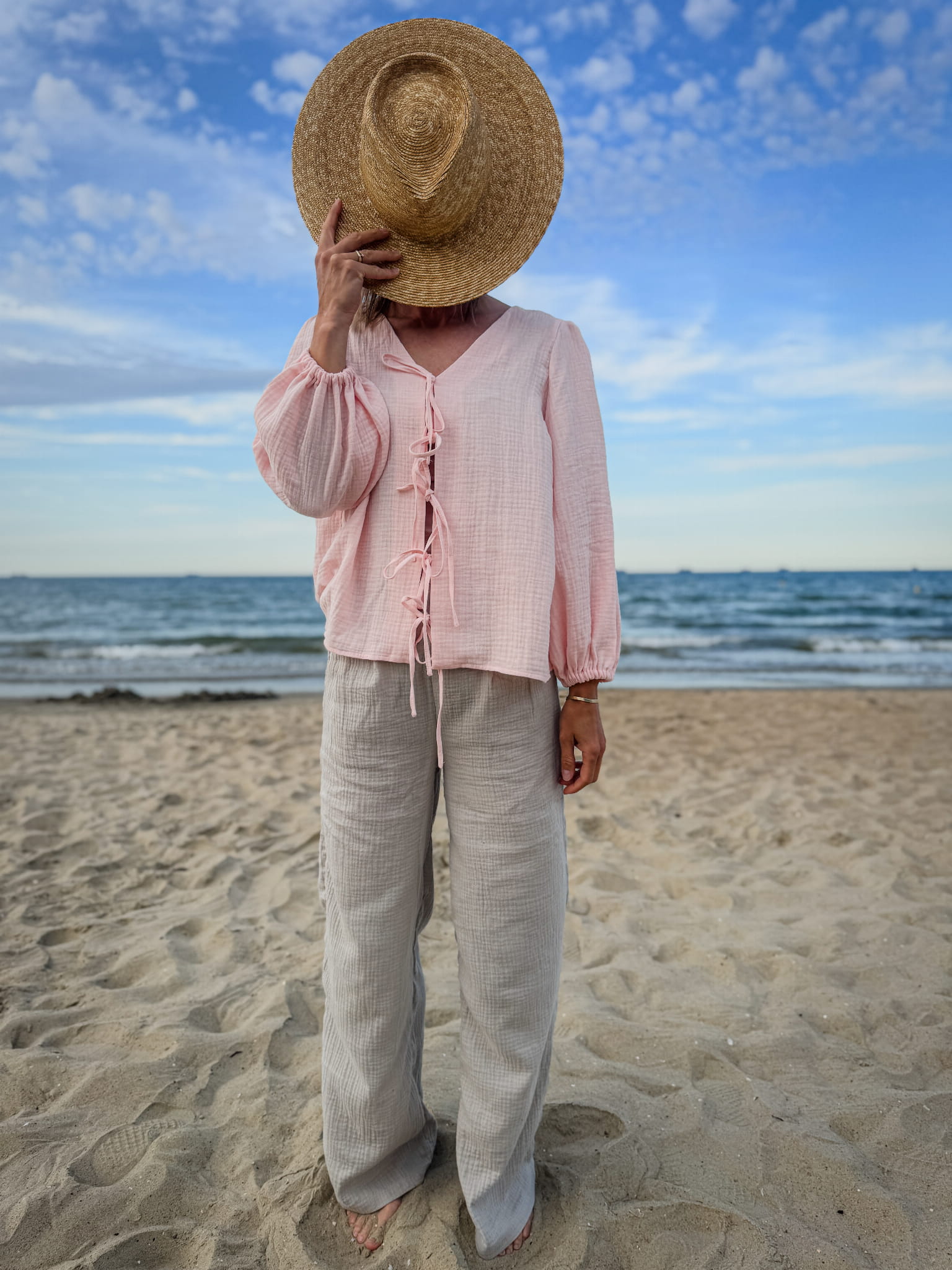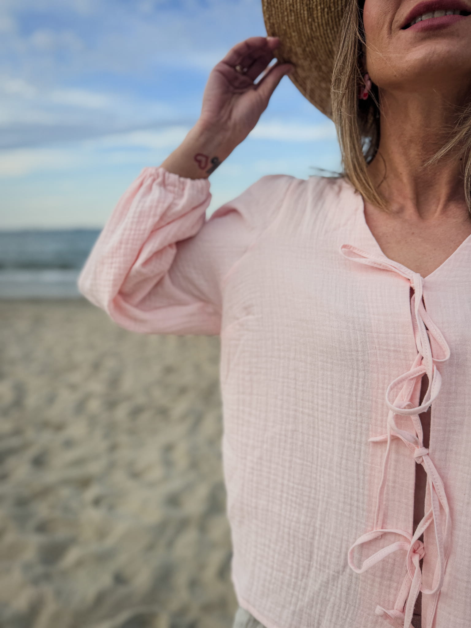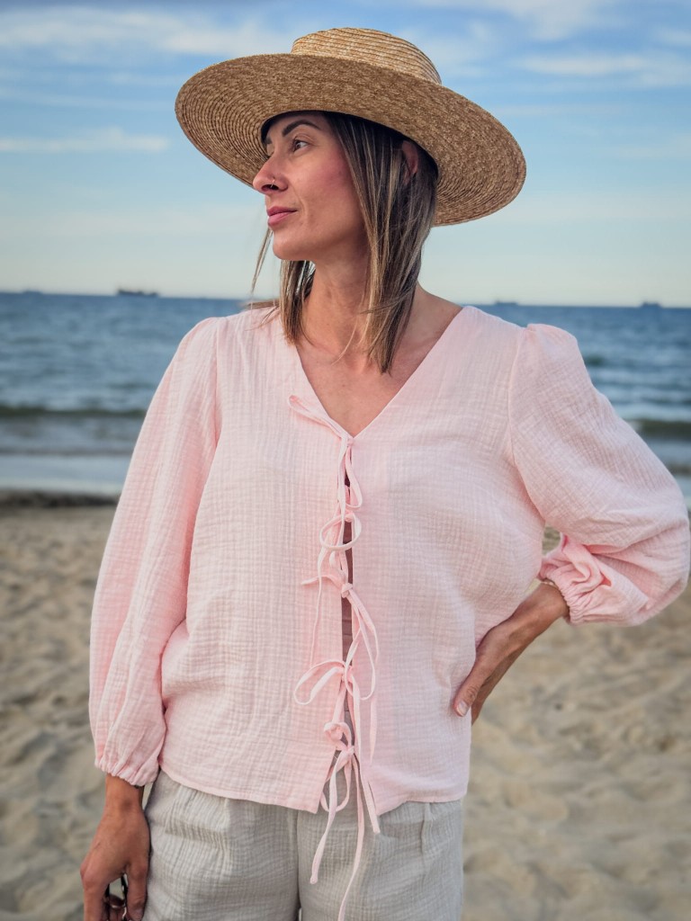 Muślinowa koszula z troczkami PUDROWY RÓŻ