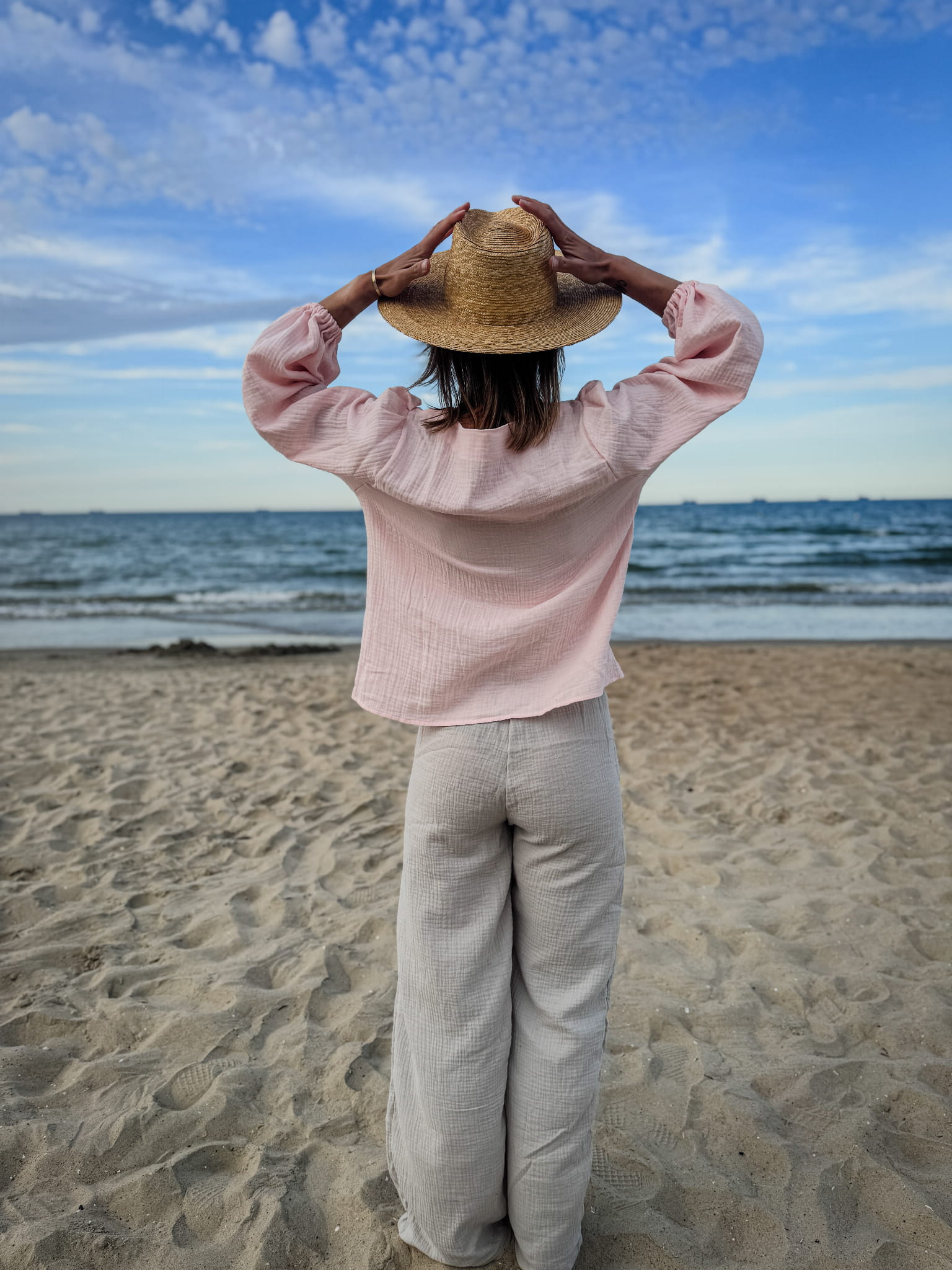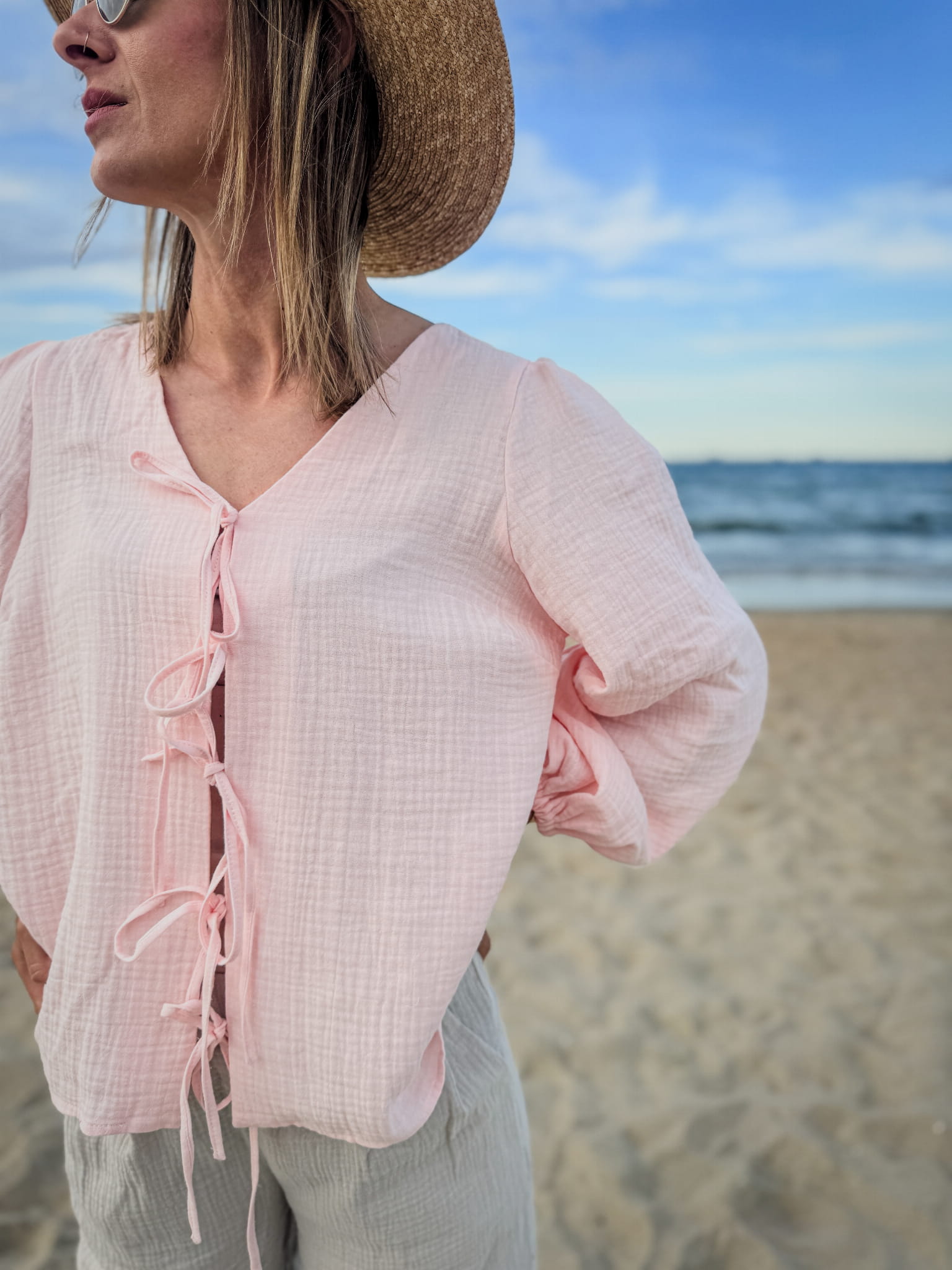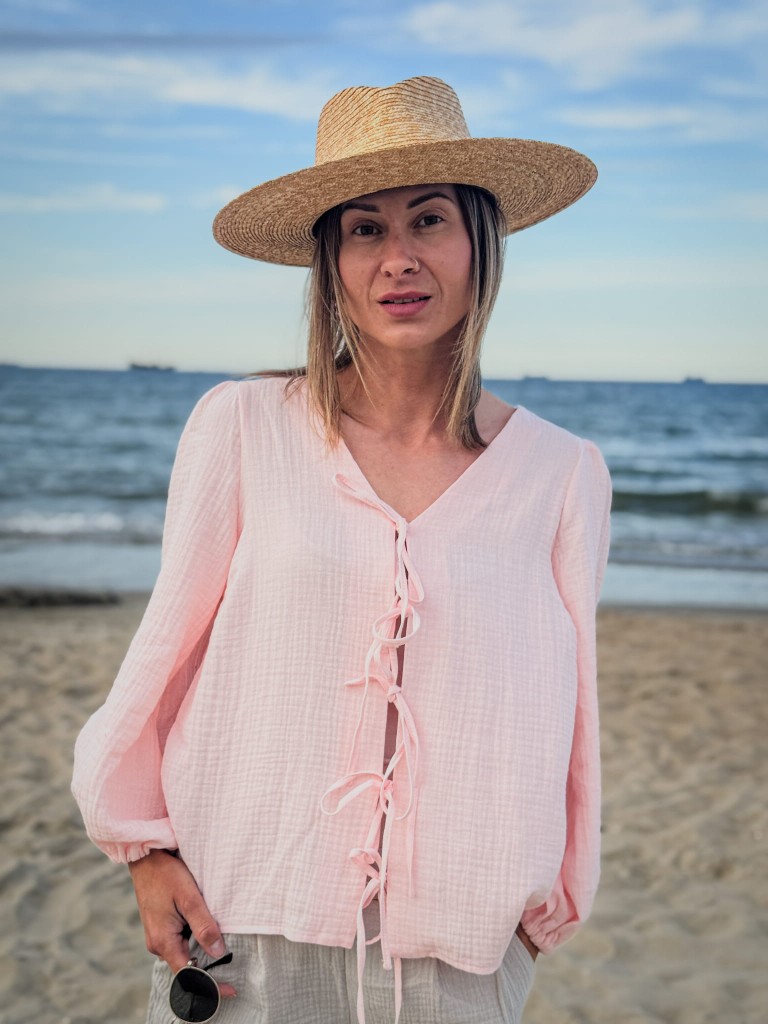 Czasem wystarczy jeden detal, by poczuć się lekko i kobieco. Ta koszula to dokładnie taki projekt – uszyta z miękkiego muślinu bawełnianego, w delikatnym odcieniu pudrowego różu, idealnie wpisuje się w styl codziennego komfortu z klasą.