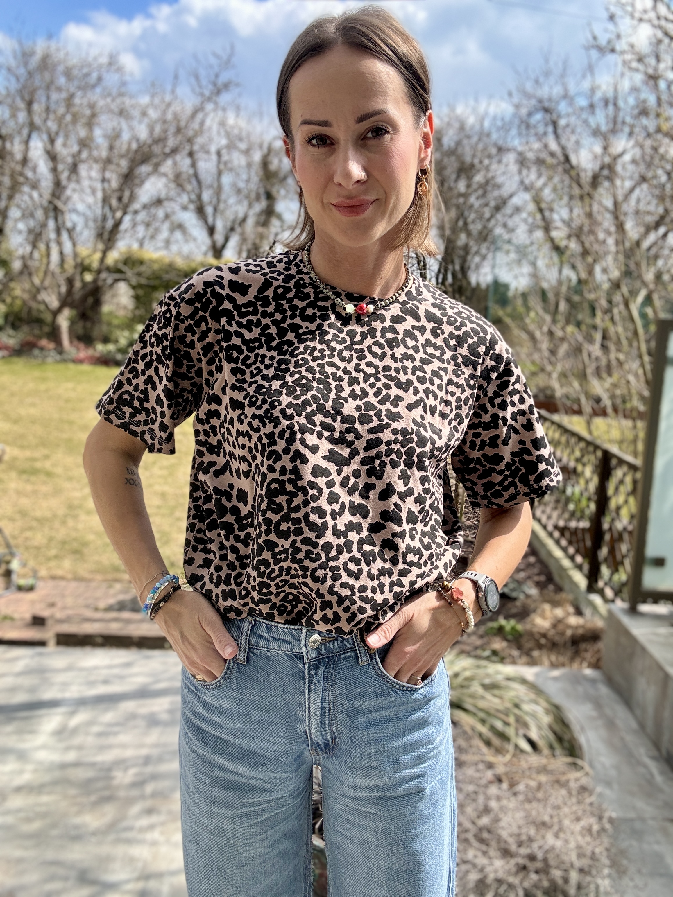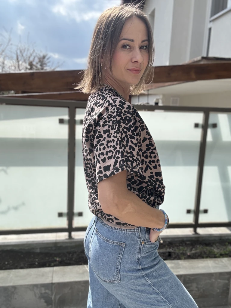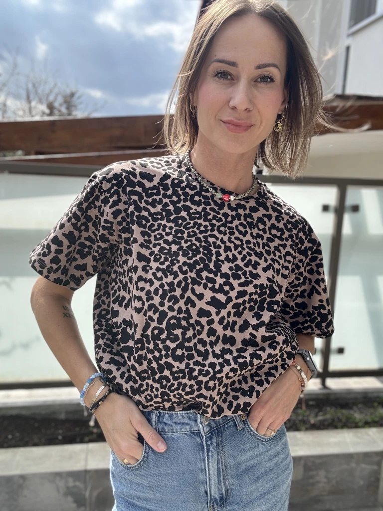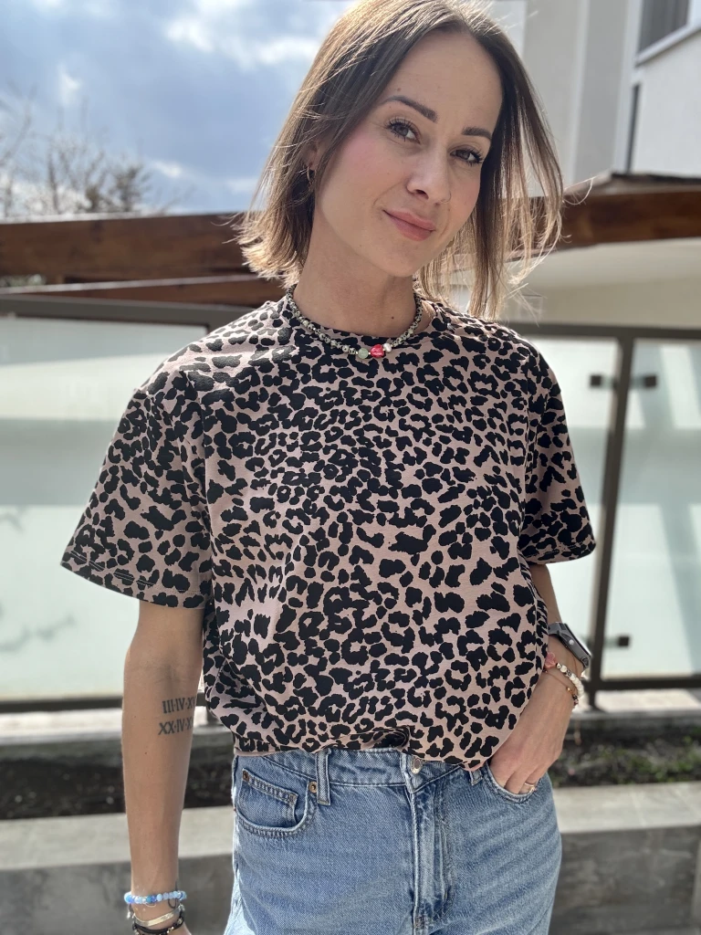Są rzeczy, które nie potrzebują nadmiaru — wystarczy dobry wzór i swobodna forma. Ta koszulka w czarne cętki pantery na beżowym tle to połączenie luzu i charakteru, które od razu przyciąga uwagę, ale nie dominuje stylizacji.