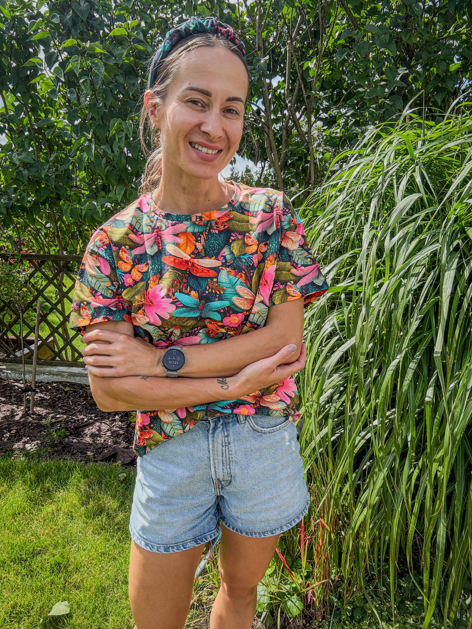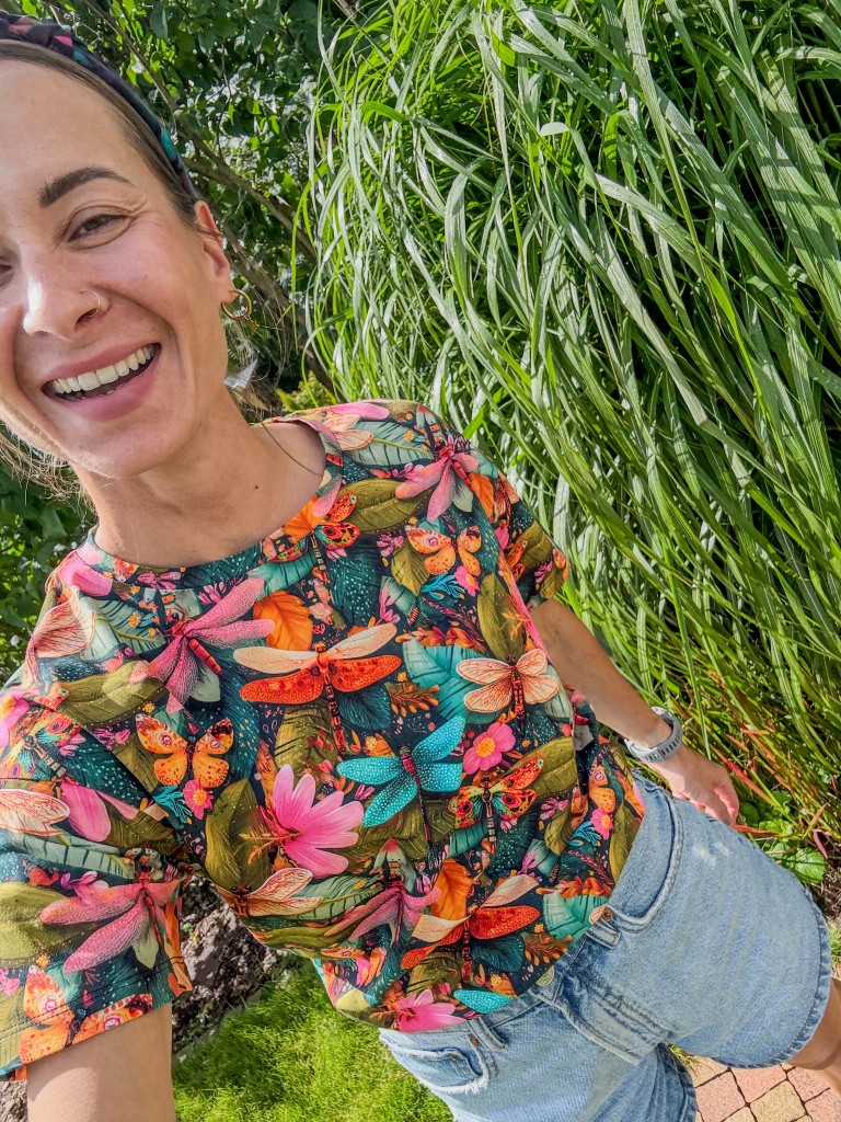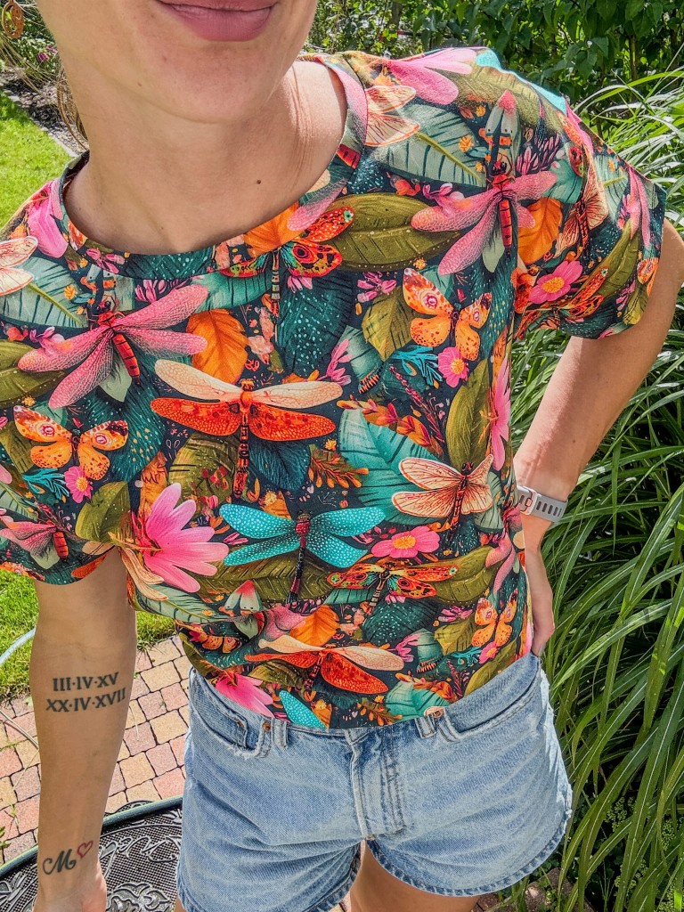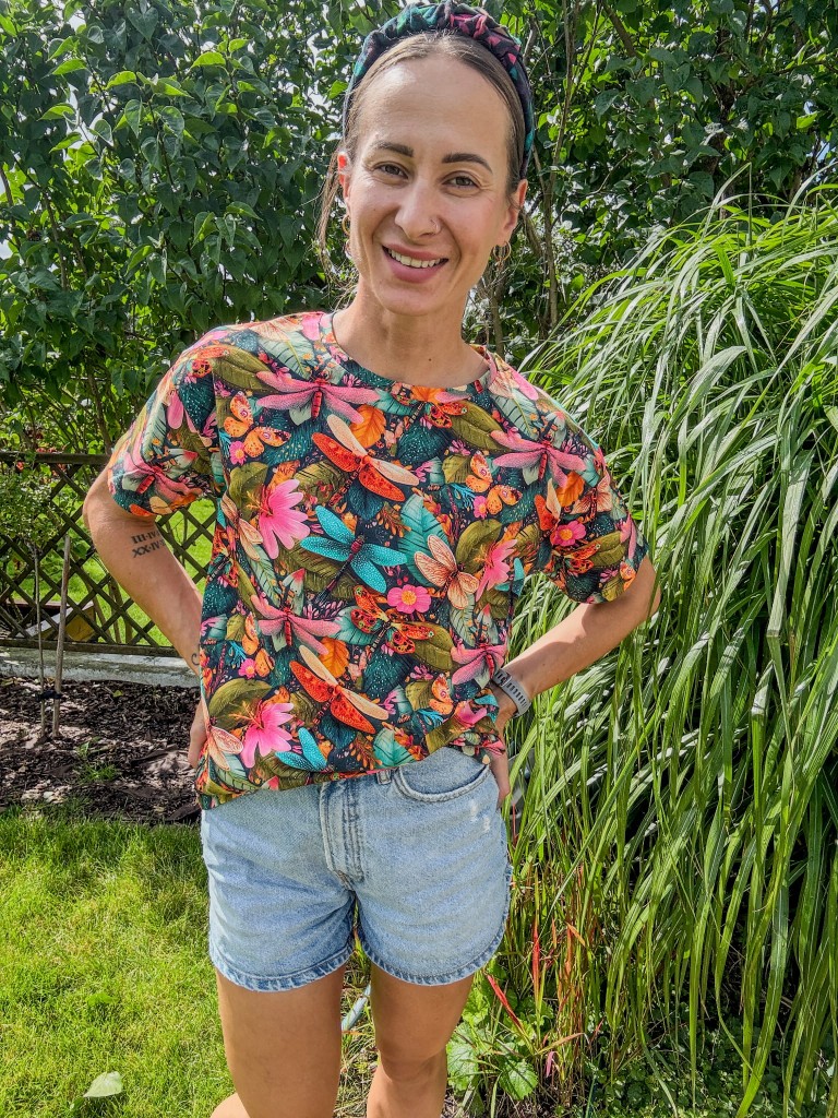 Ta koszulka to hołd dla delikatności i siły natury. Print z ważkami unoszącymi się nad ogrodem pełnym kwiatów i liści oddaje klimat letniego poranka, kiedy wszystko budzi się do życia. “Ważki w ogrodzie” to więcej niż grafika – to nastrój, opowieść i estetyka slow life.