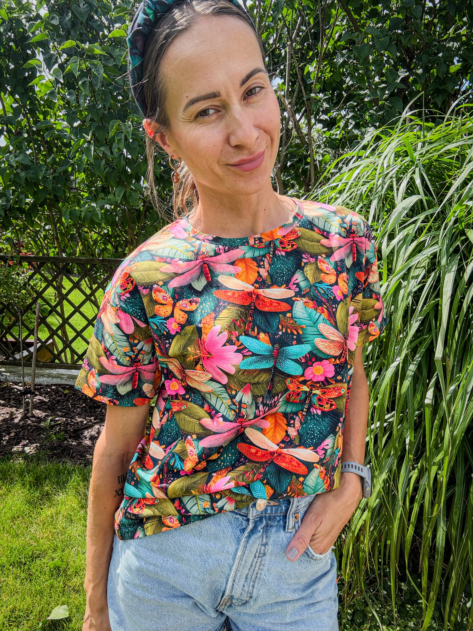 nadruk: ważki wśród ogrodu – lekki, naturalny motyw