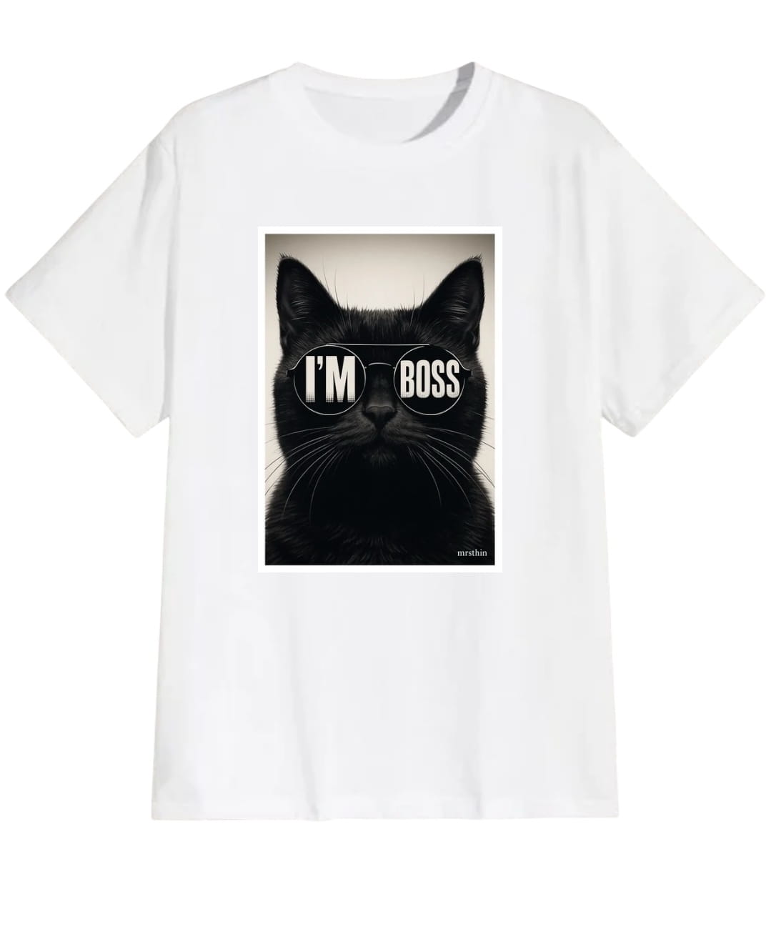 Biała męska koszulka z czarnym kotem boss