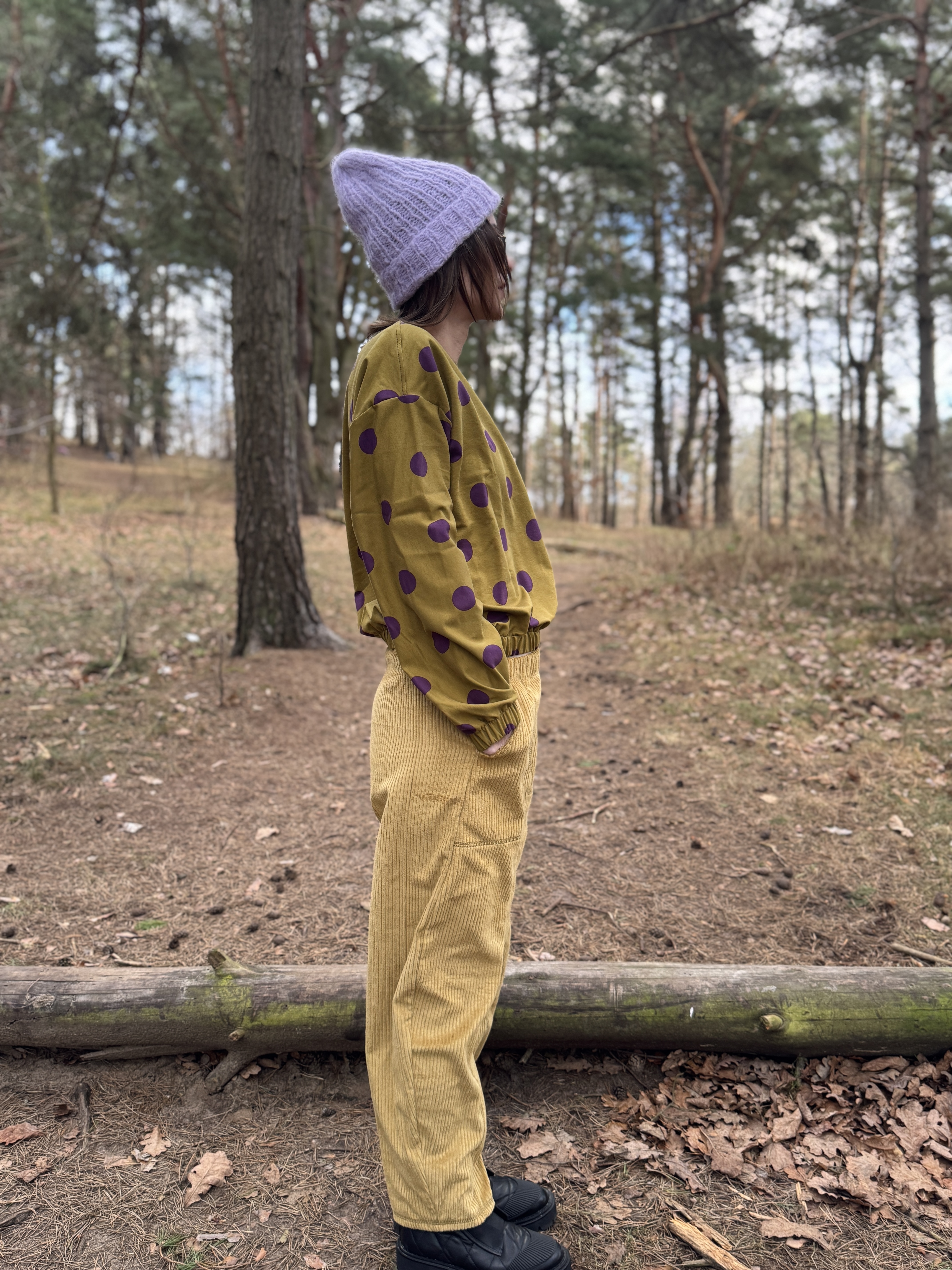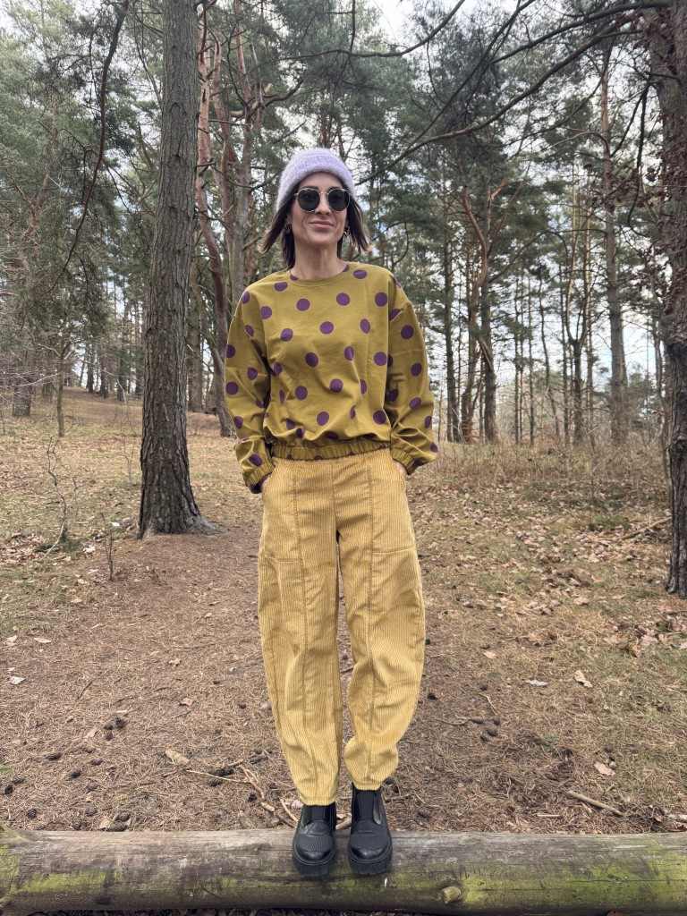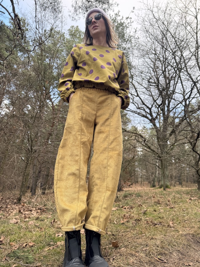 Damskie musztardowe spodnie sztruksowe BARREL LEG