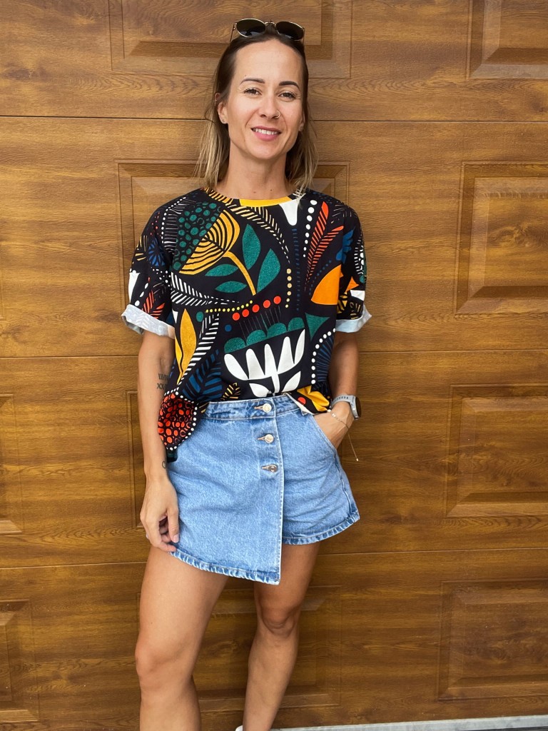Bluzka, która ma wszystkie cechy idealnej koszulki - luźna, przyjemna w dotyku i skrojona z gustem. Motyw na koszulce w afrykańskim klimacie.