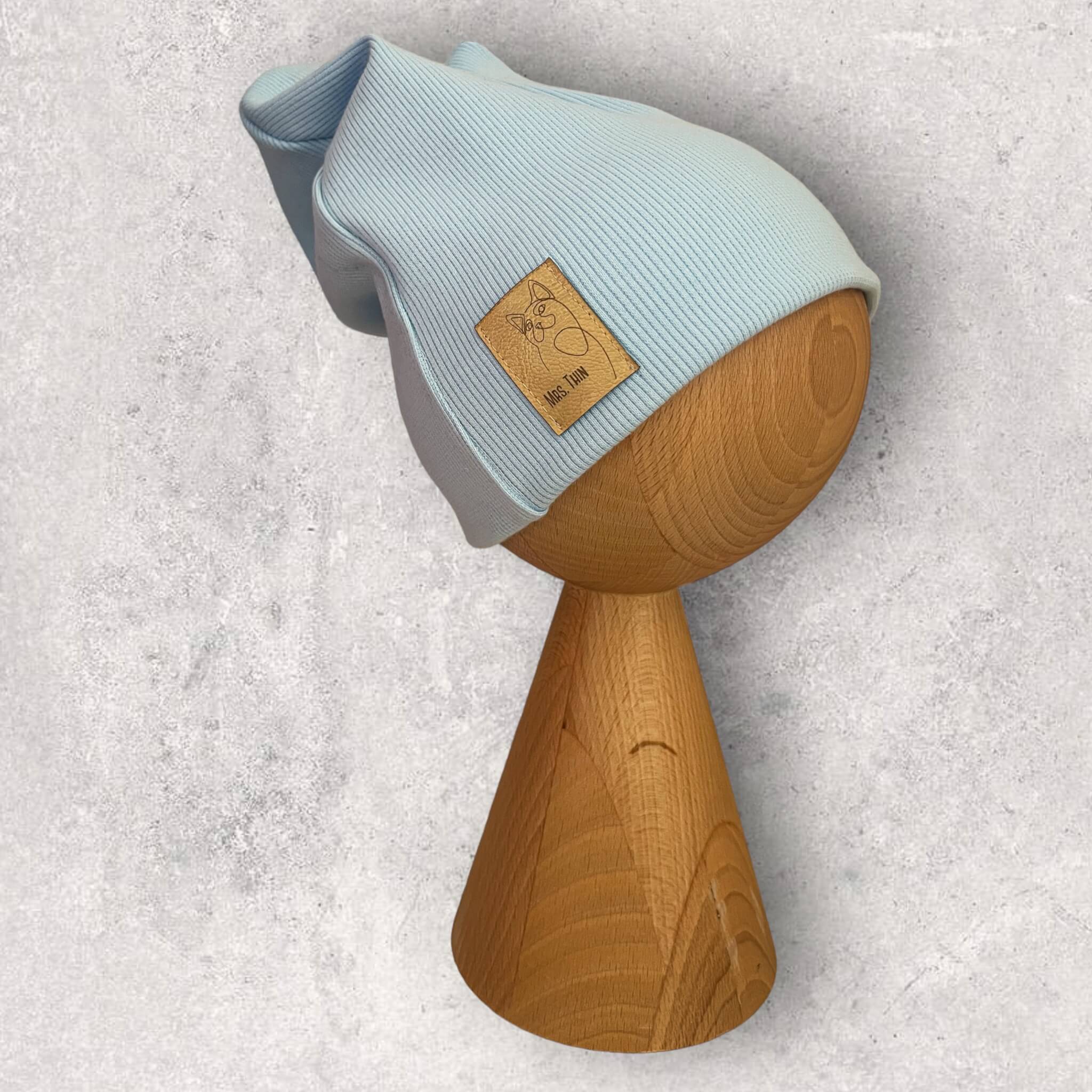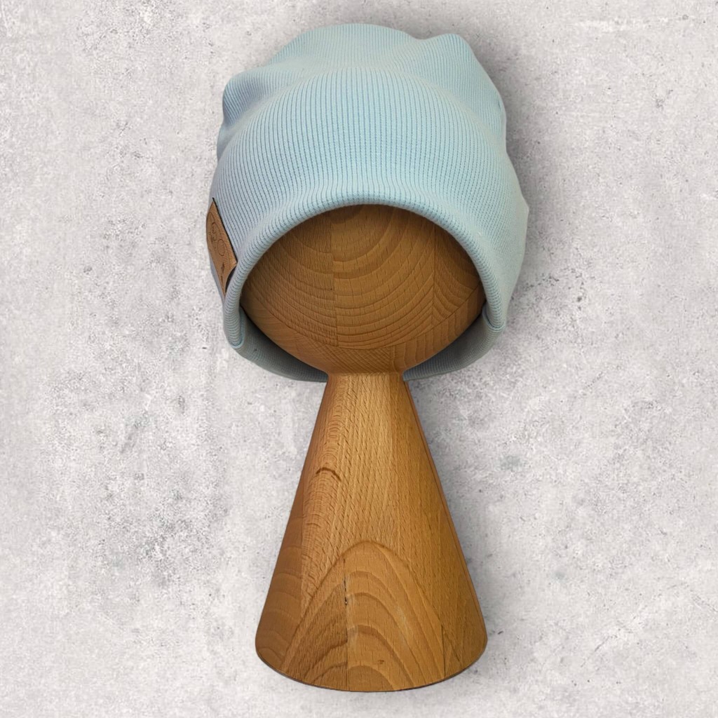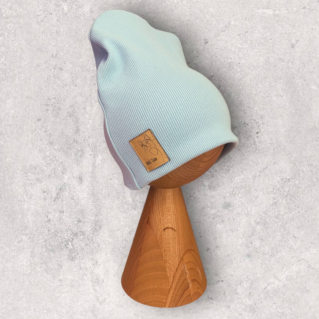 Czapka dziecięca bez podwinięcia o kroju smerfetki. Uszyta z miękkiej i elastycznej dzianiny o strukturze prążkowanej. Minimalistyczny ale dopracowany krój sprawia, że czapka układa się na głowie doskonale nie uciskając jej. Model dedykowany na jesień i wiosnę oraz na cieplejsza zimę. Nasze czapki wyróżniają wszywki z ekoskóry, które dodają czapce dodatkowego uroku.