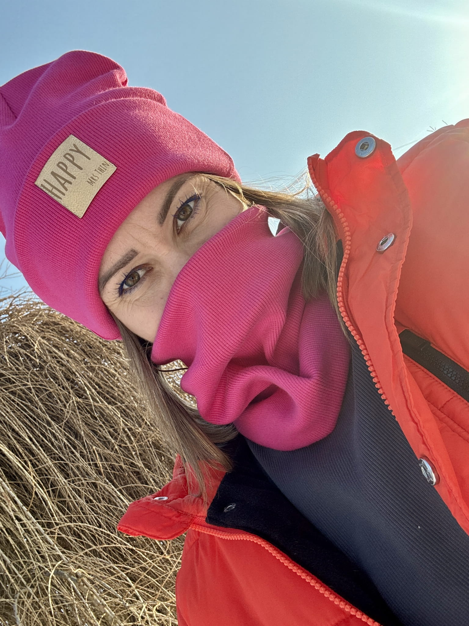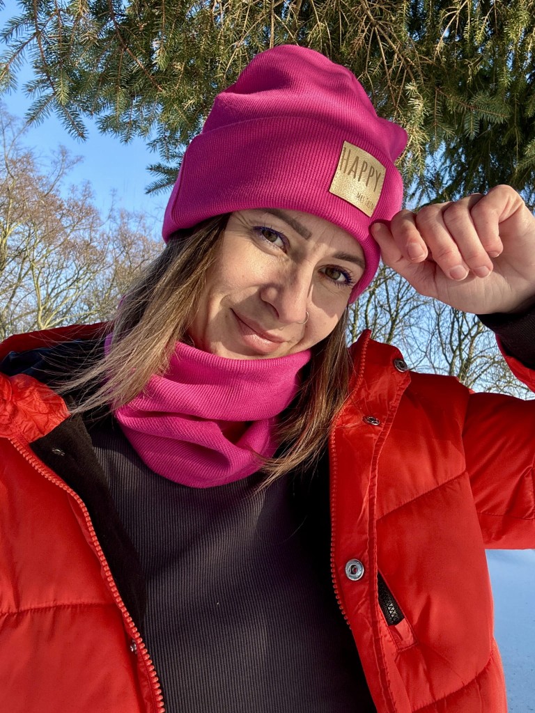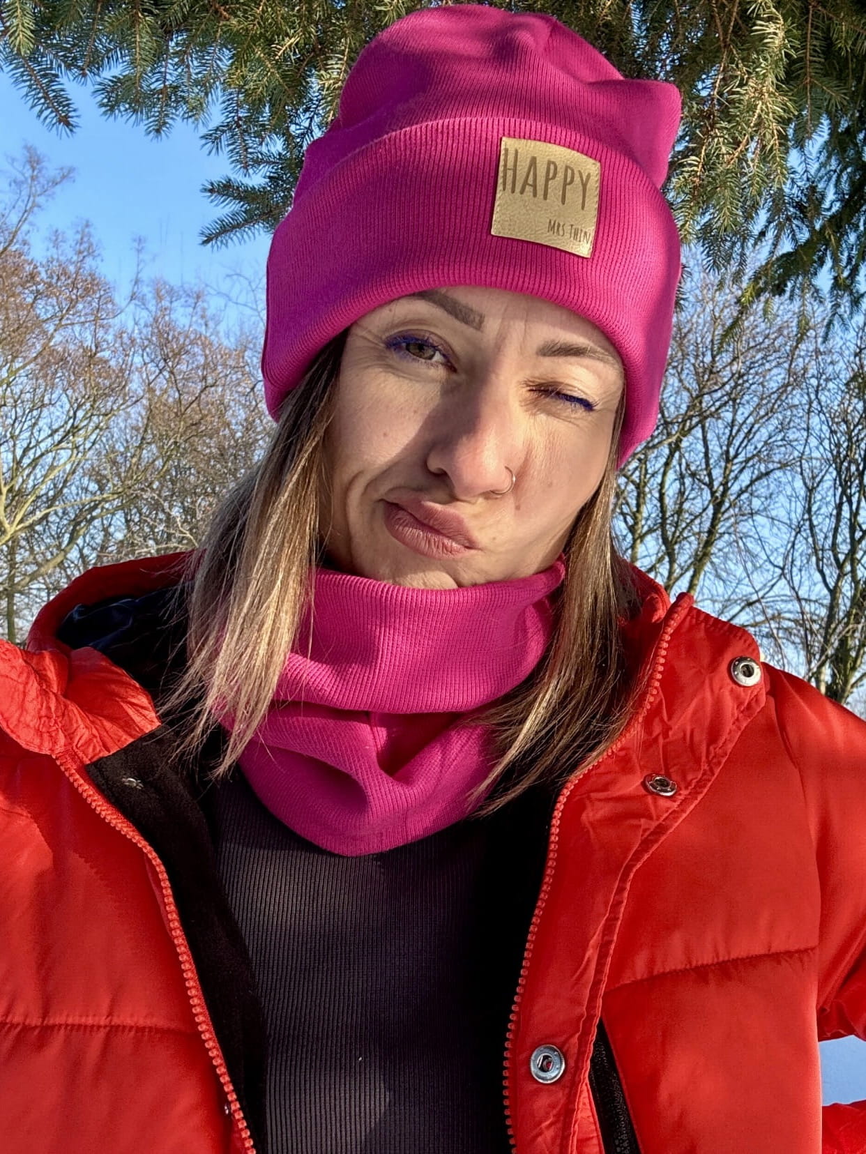 Do czapki możesz domówić komin, który ma wysokość 25 cm i przyjemnie trzyma ciepło wokół szyi.