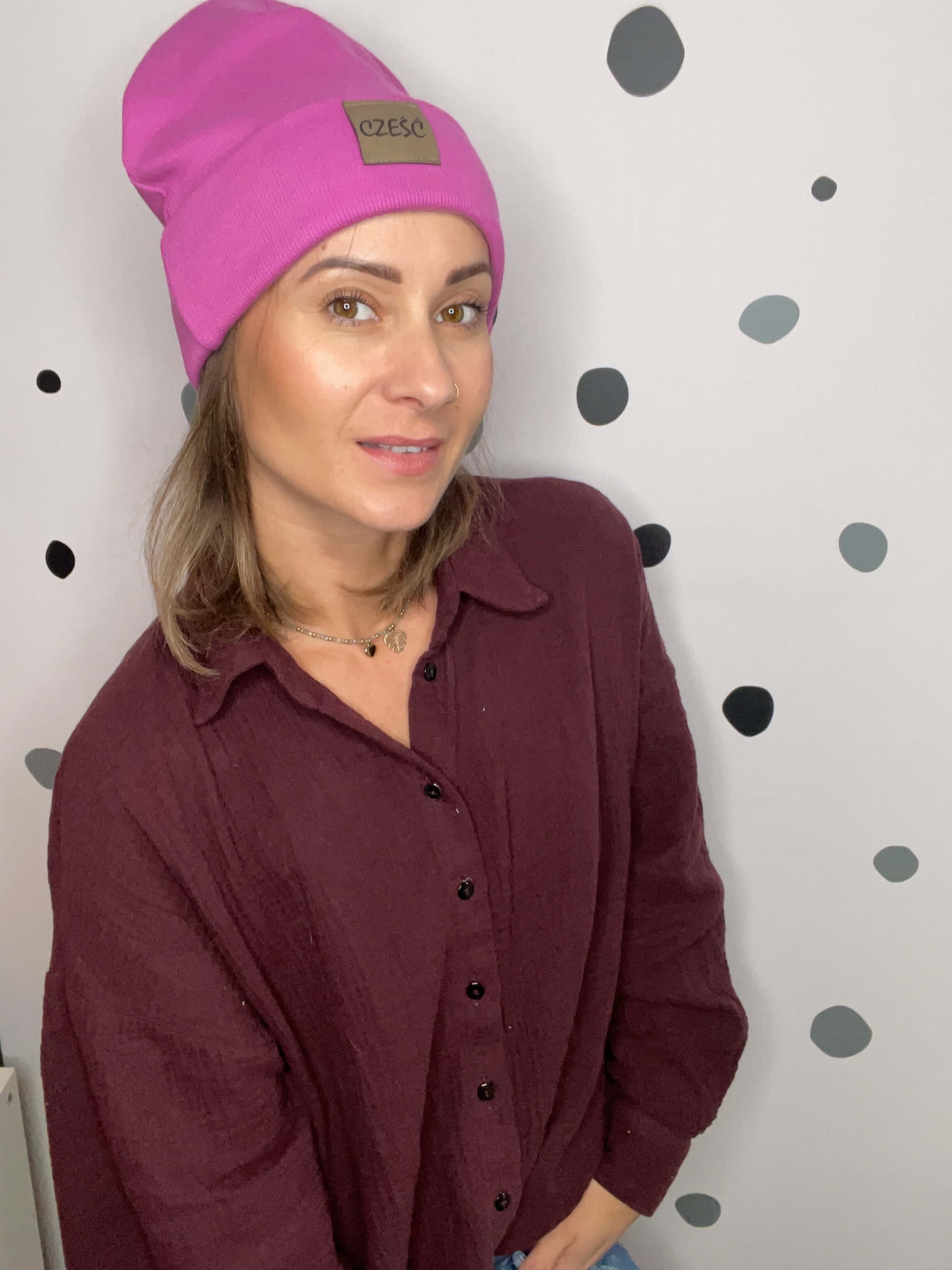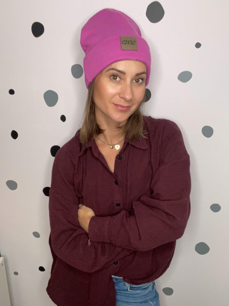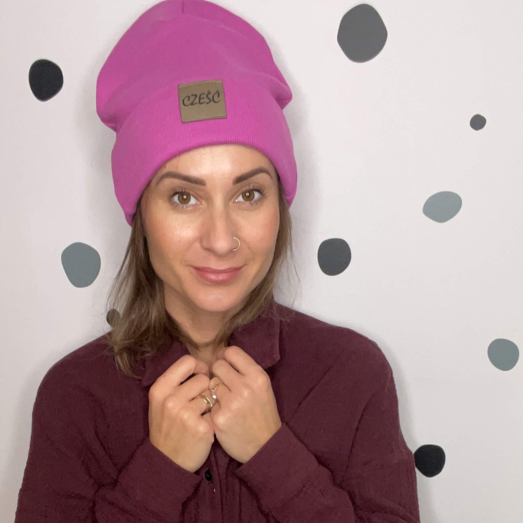 Szeroki mankiet nadaje czapce modowego charakteru, a subtelne logo CZEŚĆ podkreśla jej autorski, handmade’owy charakter.