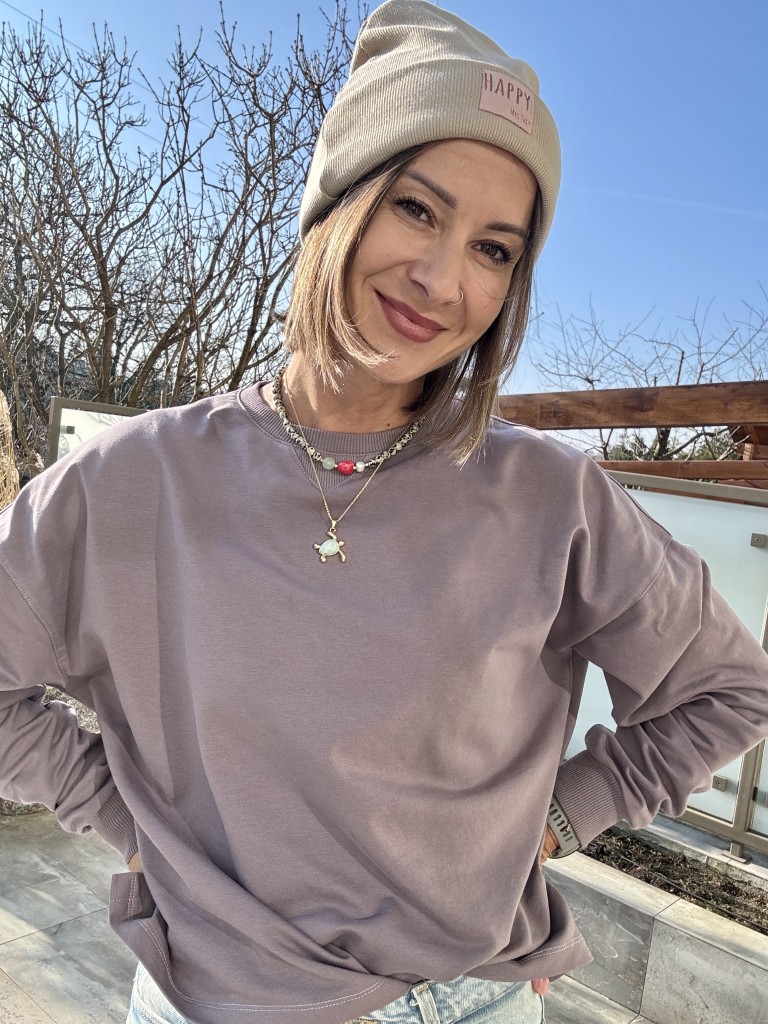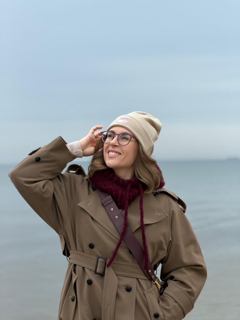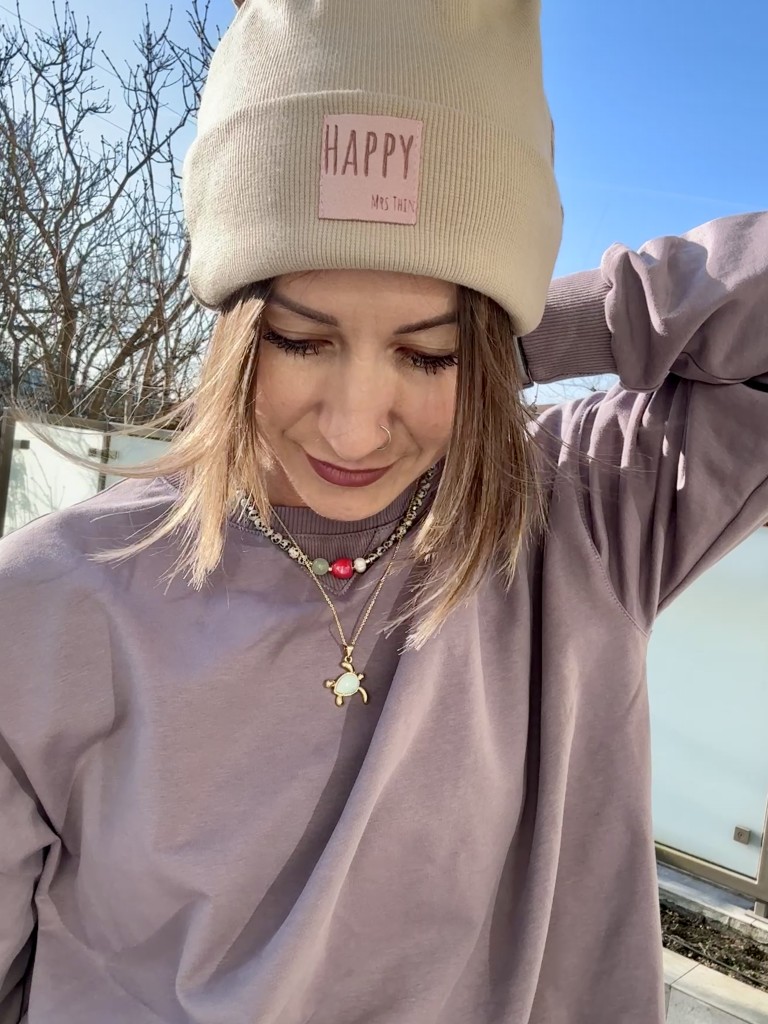Czapka doskonale leży na głowie, ma łagodny, półokrągły kształt.