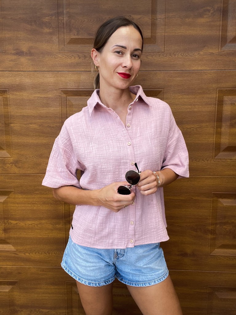 Damska koszula z krótkim rękawem BRUDNY RÓŻ