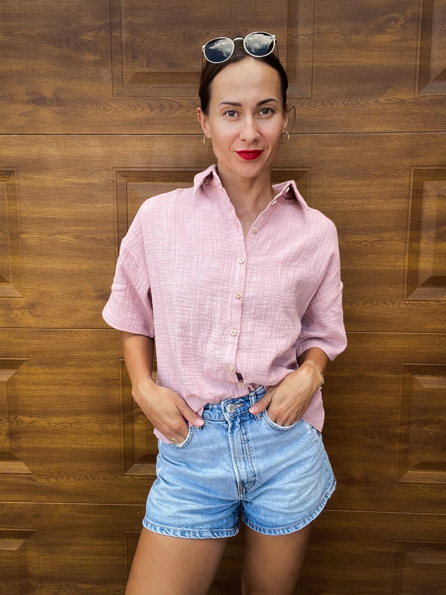 Koszula muślinowa o swobodnym kroju z krótkim, ale dłuższym rękawem, który możesz dowolnie podwijać dostosowując ubiór do sytuacji i pogody.