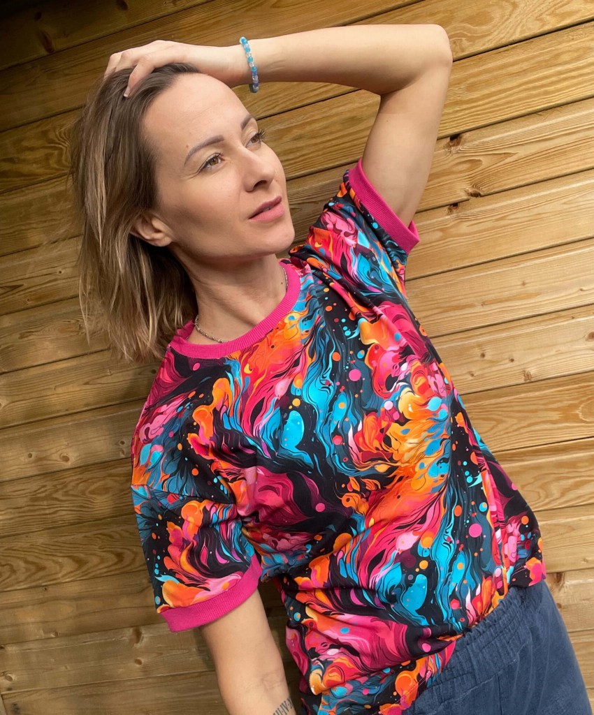Koszulka Ekspresja to nasz nowy krój damskich t-shirtów. Fason, który jest bardziej przy ciele pozwala czuć się kobieco a wykończenie kontrastowymi ściągaczami przy rękawkach i szyi dodaje całości niepowtarzalnego charakteru.
