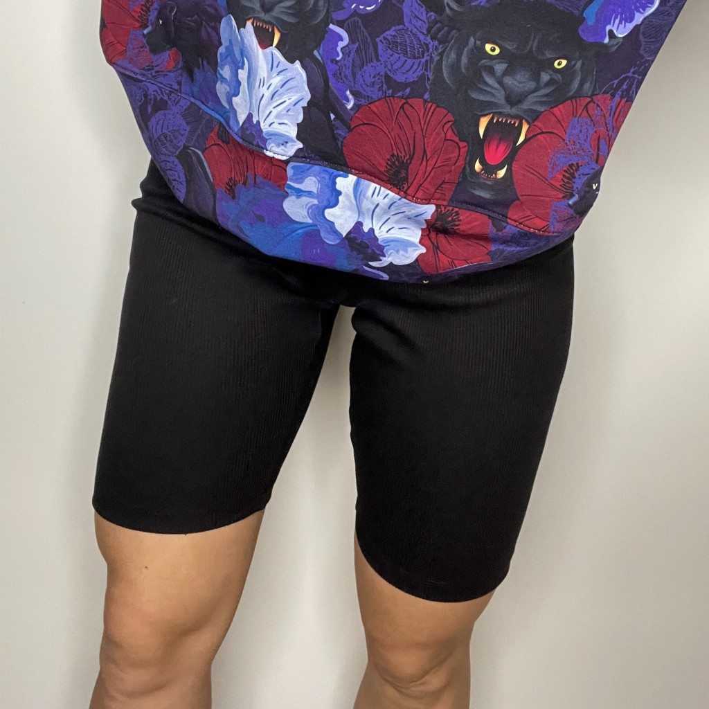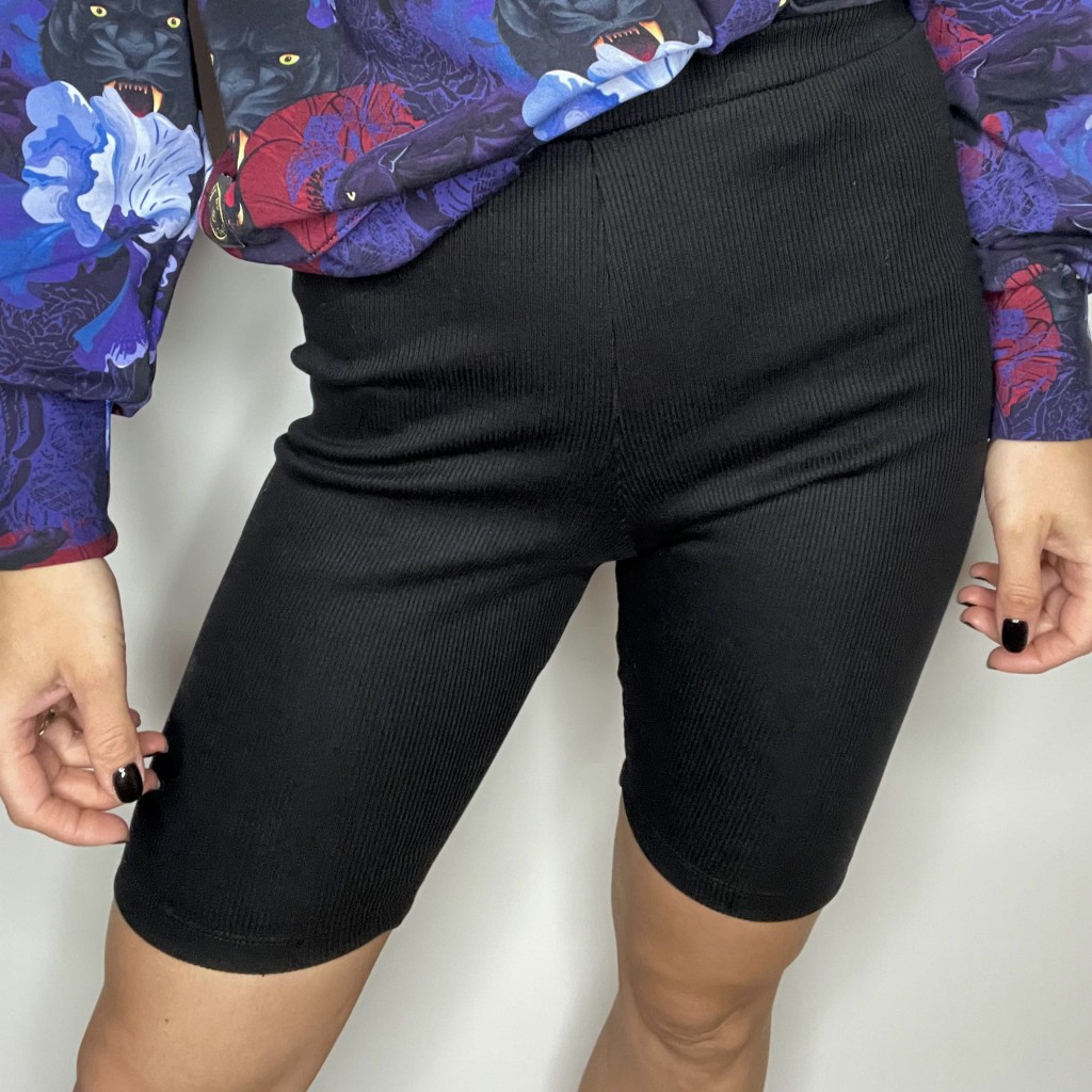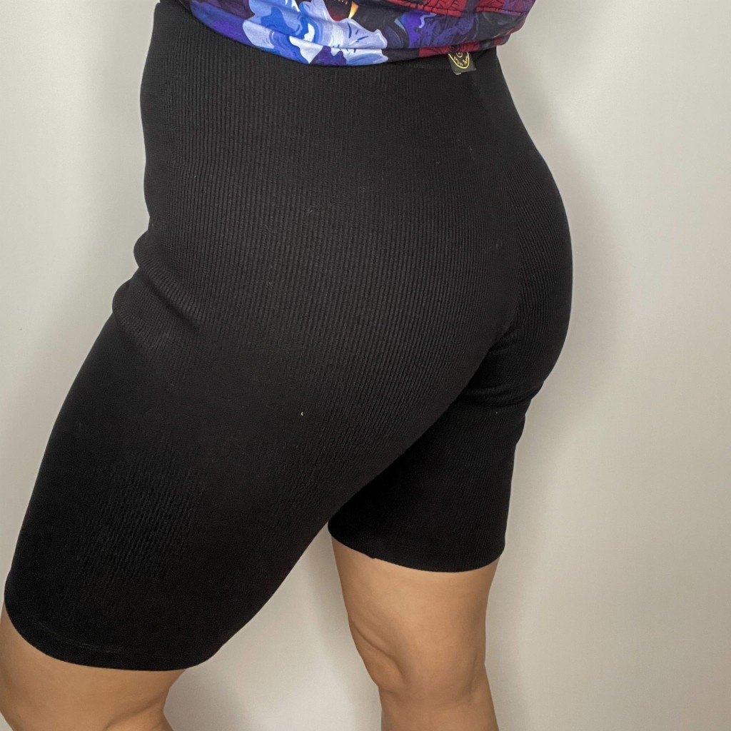 Damskie spodenki typu kolarki o długości przed kolano. Uszyte z bawełnianego ściągacza w kolorze czarnym.