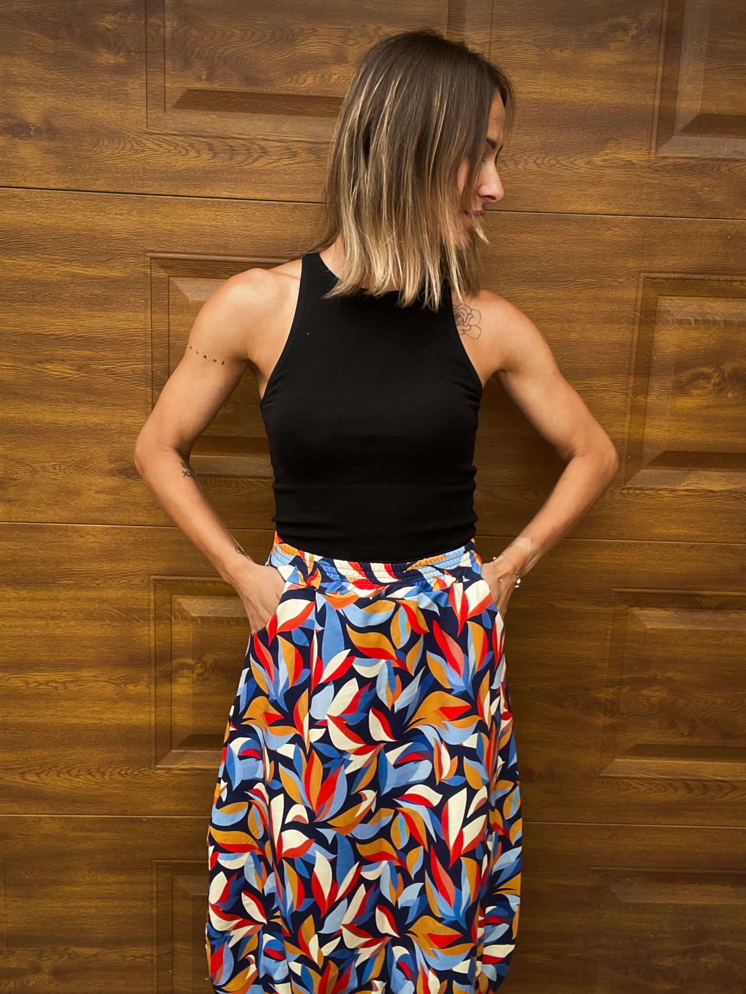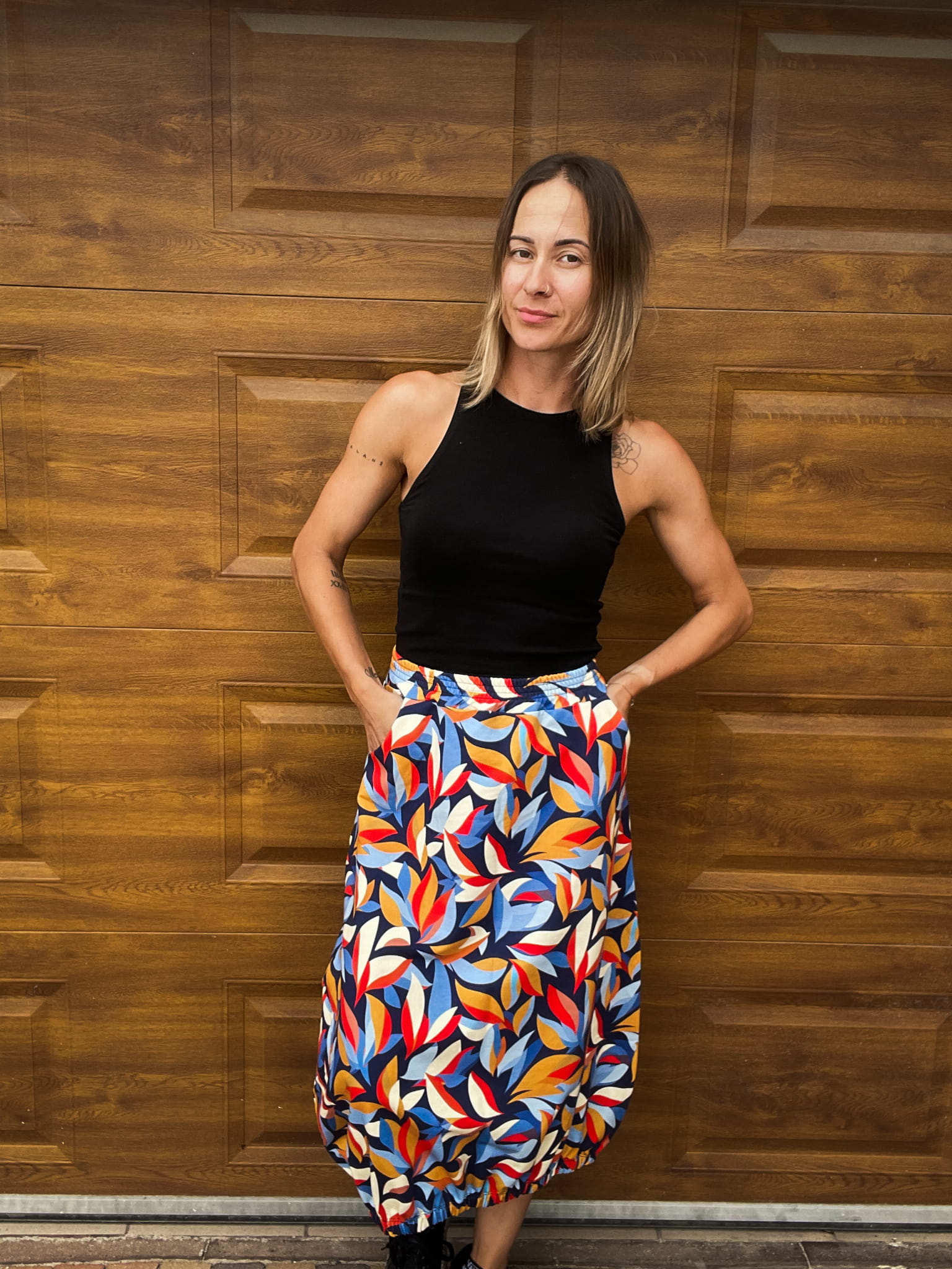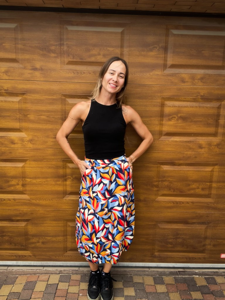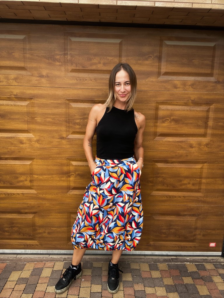 Spódnica typu bombka w nieco sportowym stylu. Wygodna, codzienna. Wykonana z dresówka pętelki z nadrukiem cyfrowym. Ten fason to przyjemność noszenia połączona z oryginalnym krojem.
