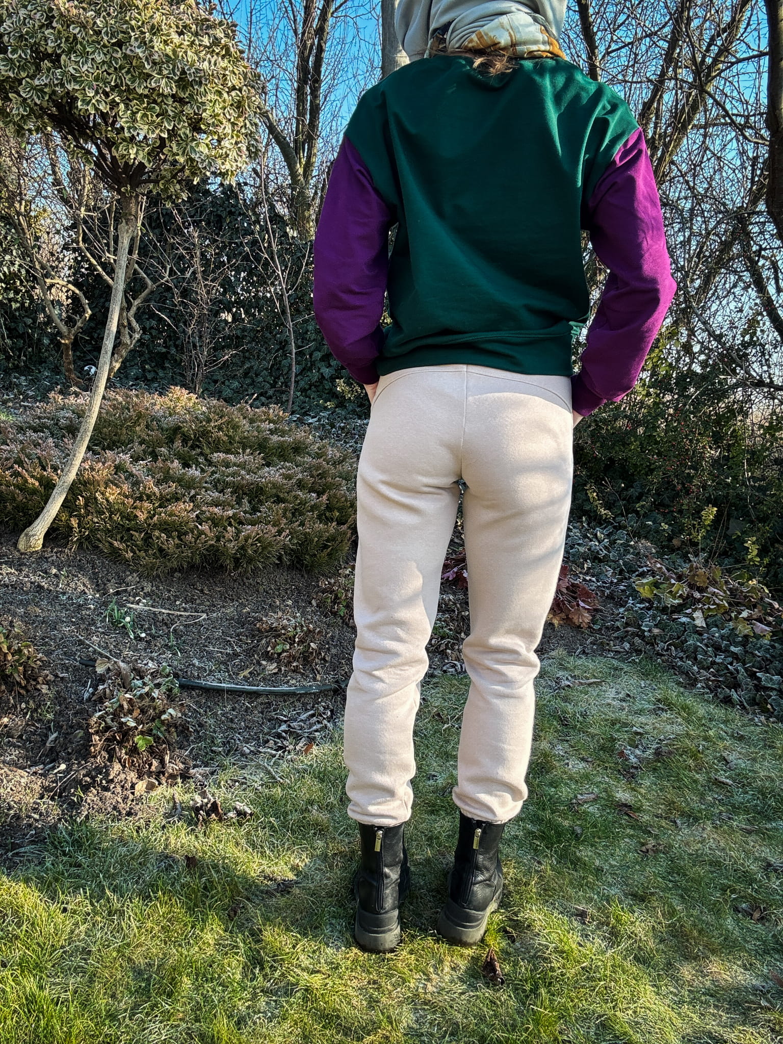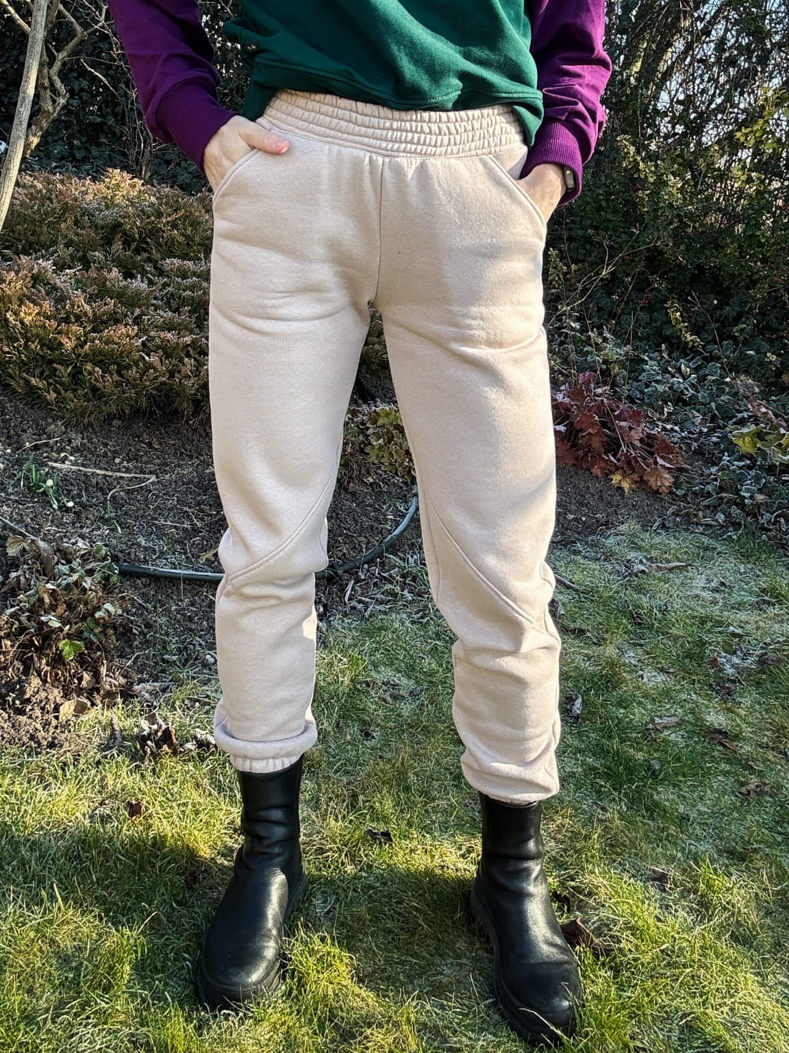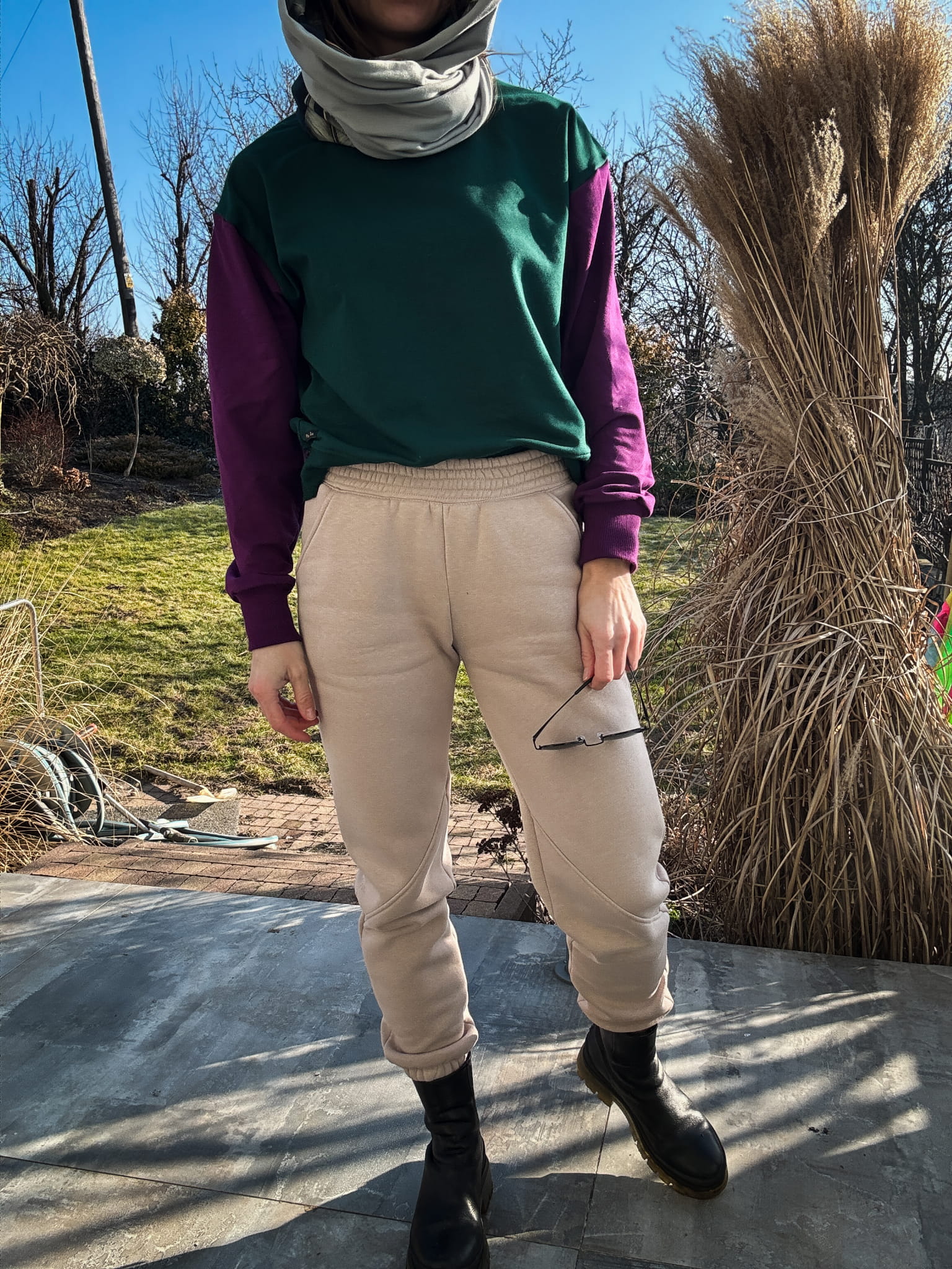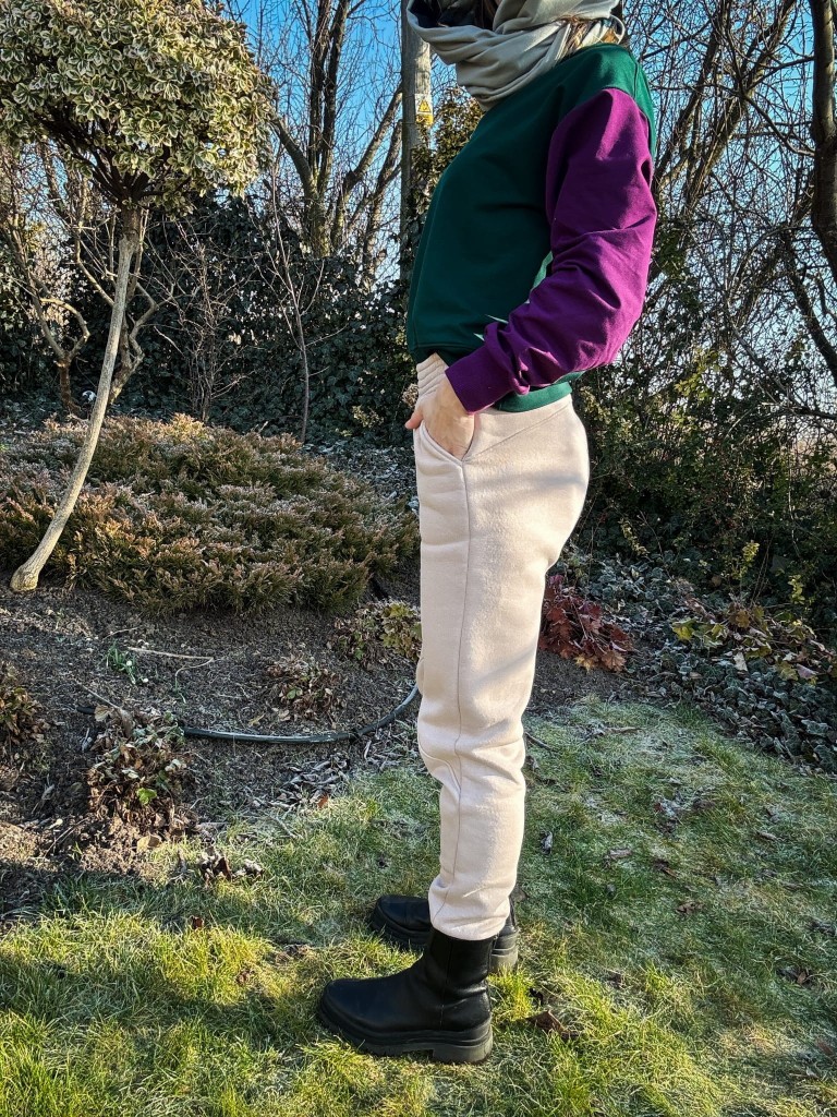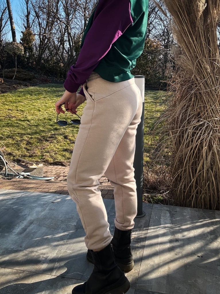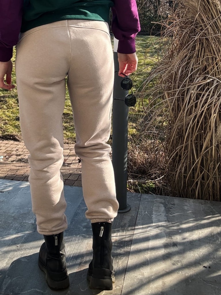 Wąska nogawka, elastyczne gumki w pasie i przy kostkach – totalna wygoda, zero kompromisów.
