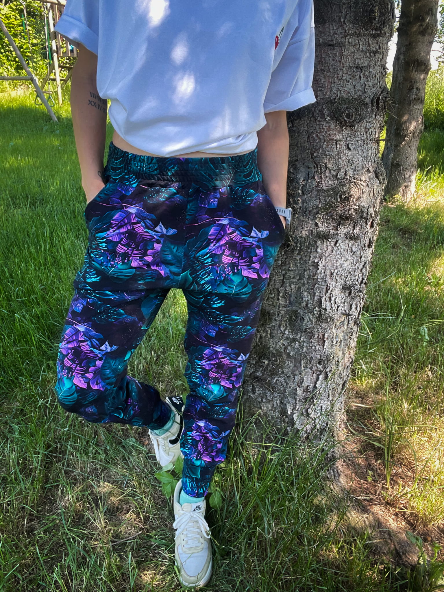 Spodnie z wyższym stanem FIOLETOWA DŻUNGLA