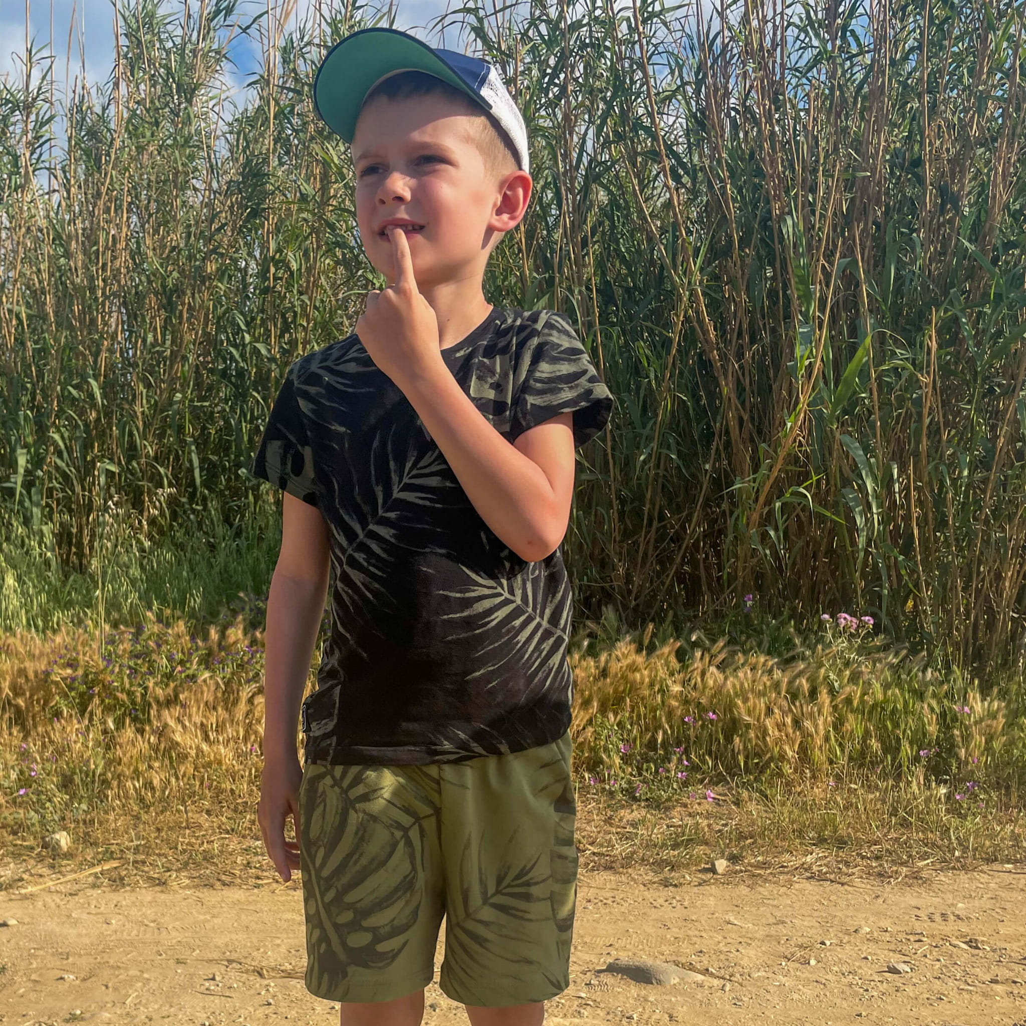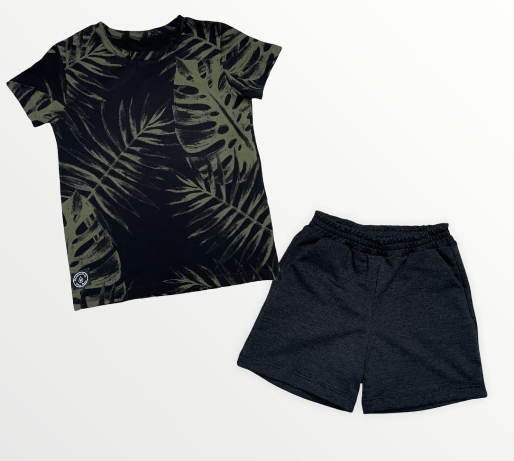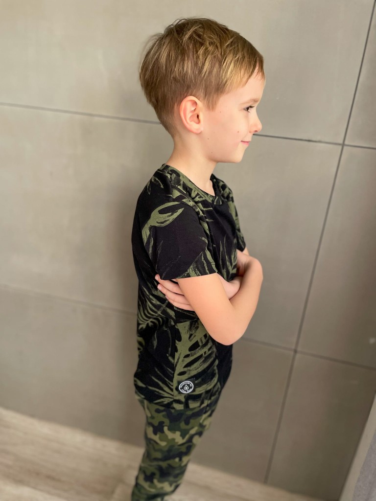 Koszulka MONSTERA to propozycja dla setów TATA&SYN z serii #matchymatchy. Na czarnym tle widać zielone liście monstery - niezwykle modny motyw od kilku sezonów. Niezobowiązujący wzór, komfortowy krój
