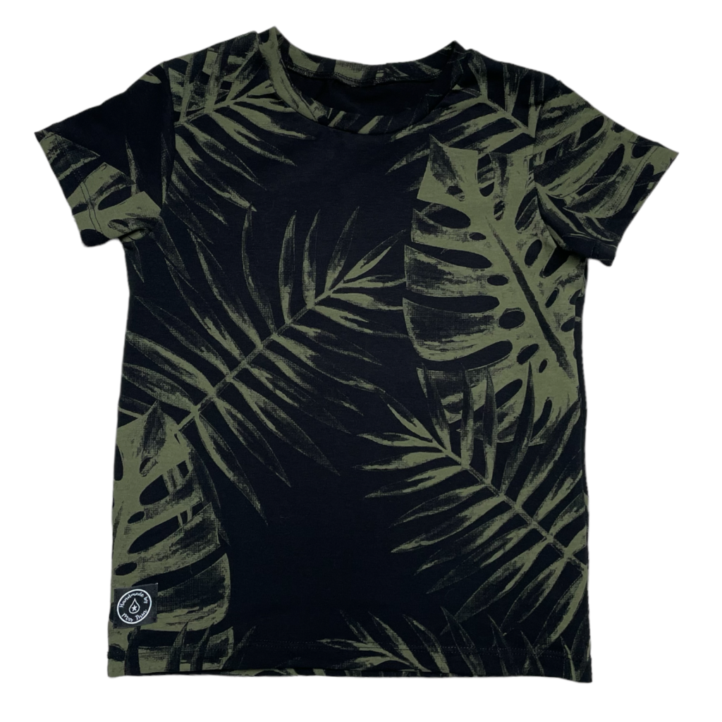 Koszulka MONSTERA to propozycja dla setów TATA&SYN z serii #matchymatchy. Na czarnym tle widać zielone liście monstery - niezwykle modny motyw od kilku sezonów. Krój SLIM FIT, który jest bardziej dopasowany do sylwetki. Niezobowiązujący wzór, komfortowy krój i najwyższa jakość dzianiny. Logo firmowe wszyte u dołu koszulki.