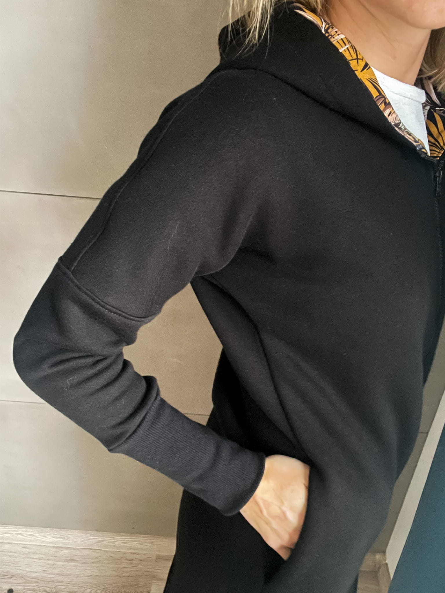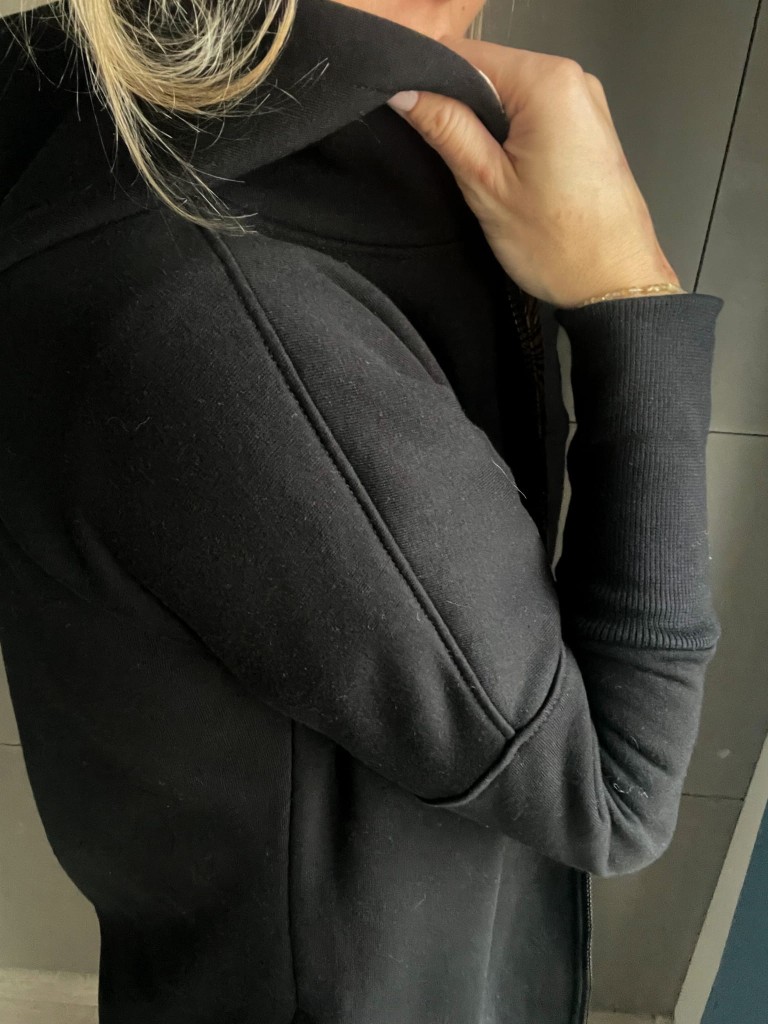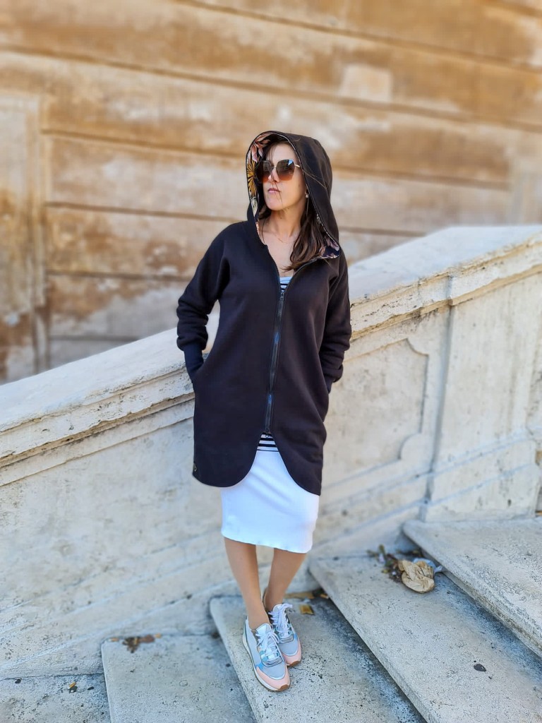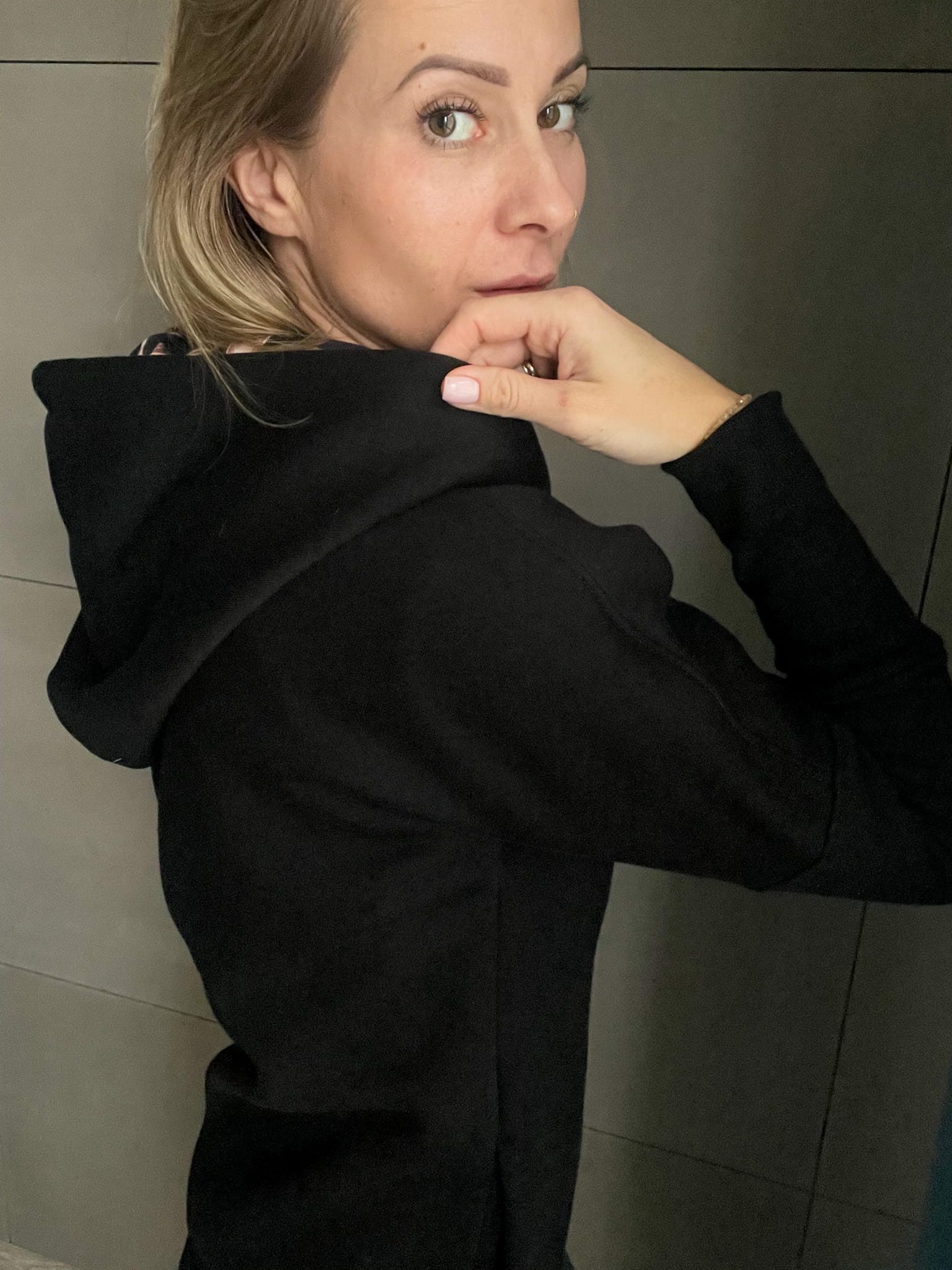 Płaszczyk, który jest jednocześnie narzutką, peleryną i ciepłą bluzą? Tak! Ten model został zaprojektowany dla osób, które lubią, gdy ubrania pracują na wiele sposobów. Możesz otulić się nim w chłodny poranek, narzucić na sukienkę w drodze do pracy lub traktować jako codzienny płaszcz o sportowej duszy.