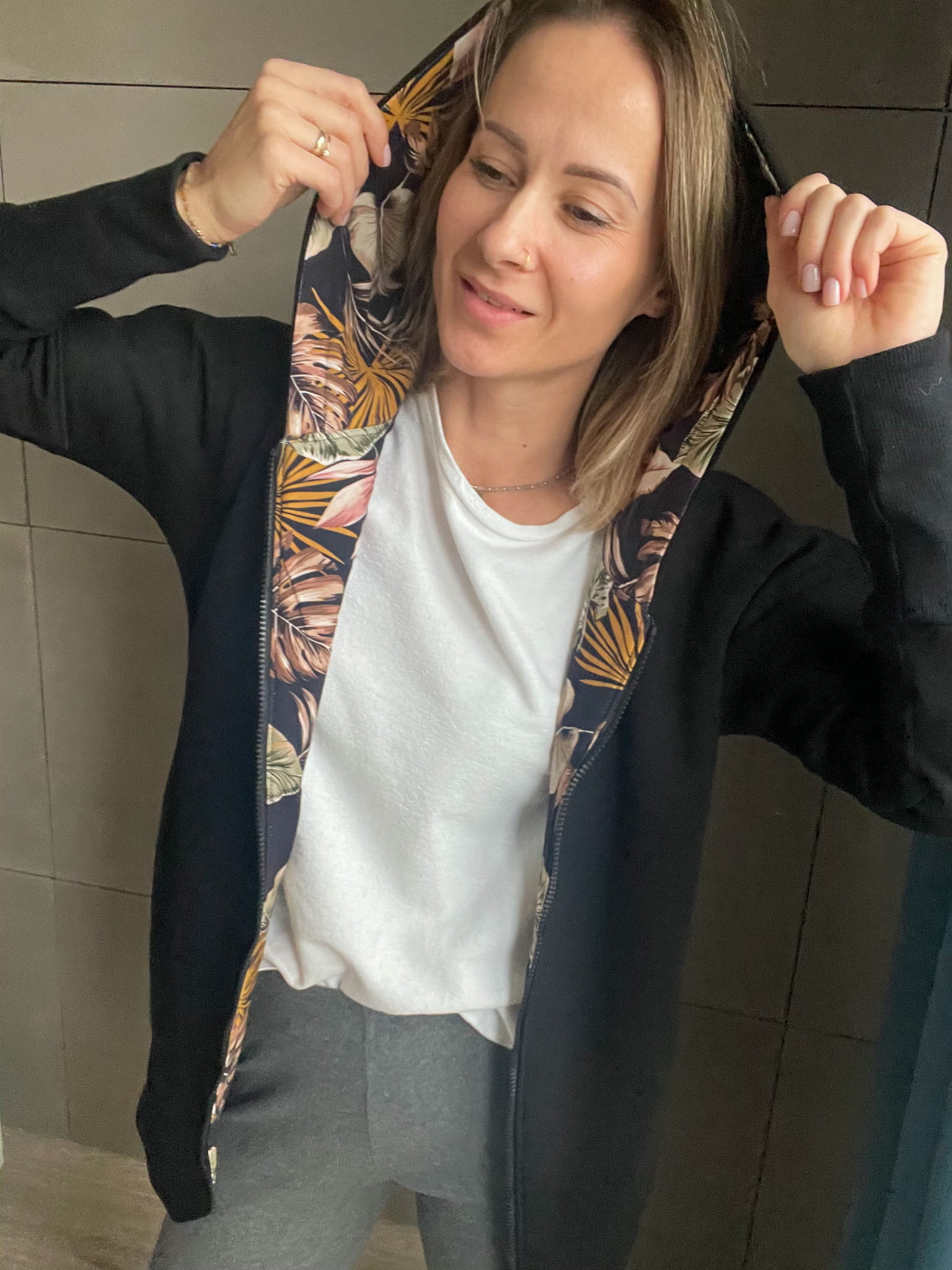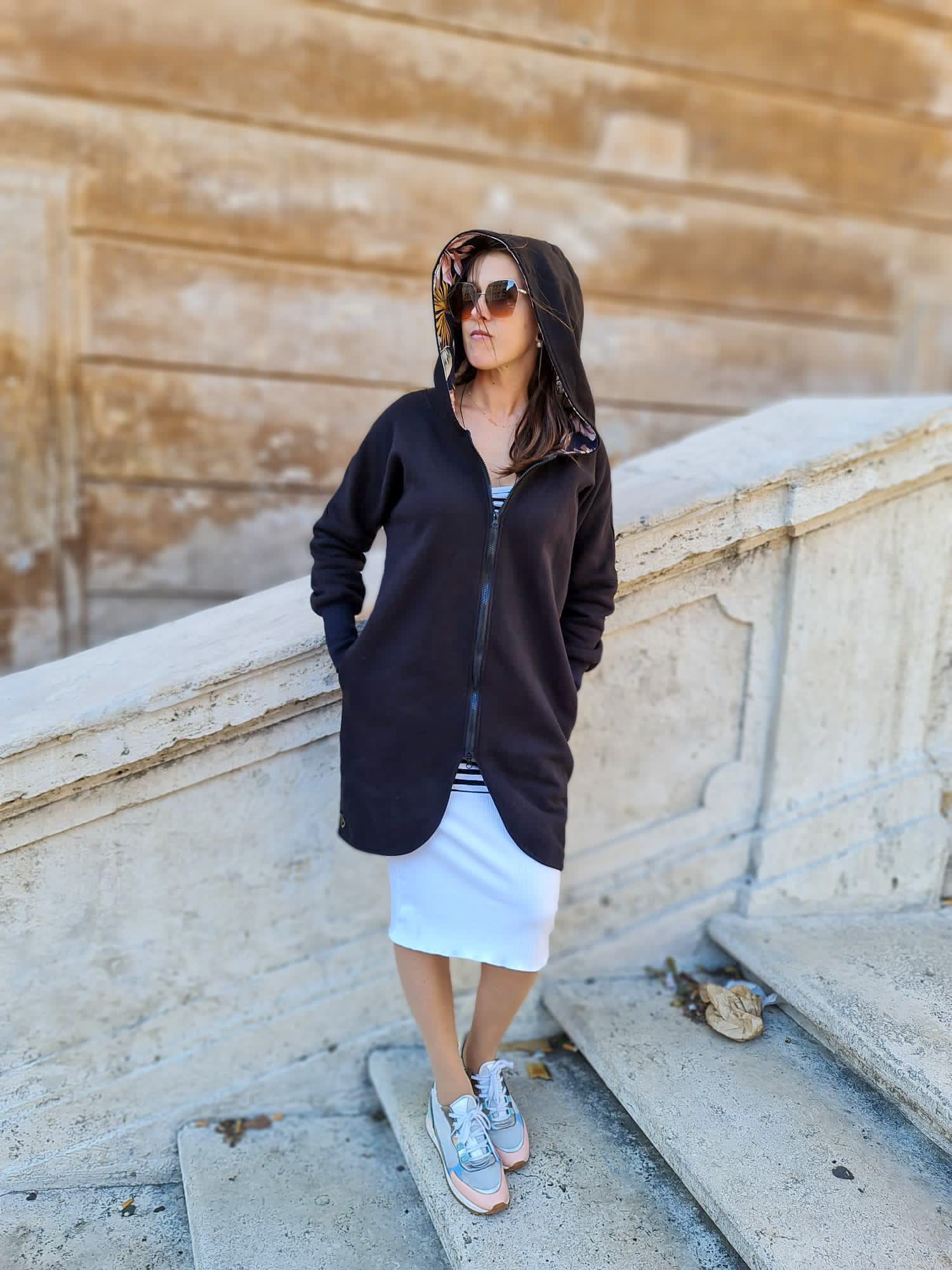 Płaszczyk dresowy CZARNY/ANTYCZNE KWIATY